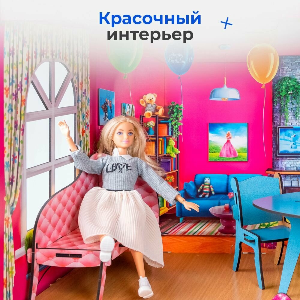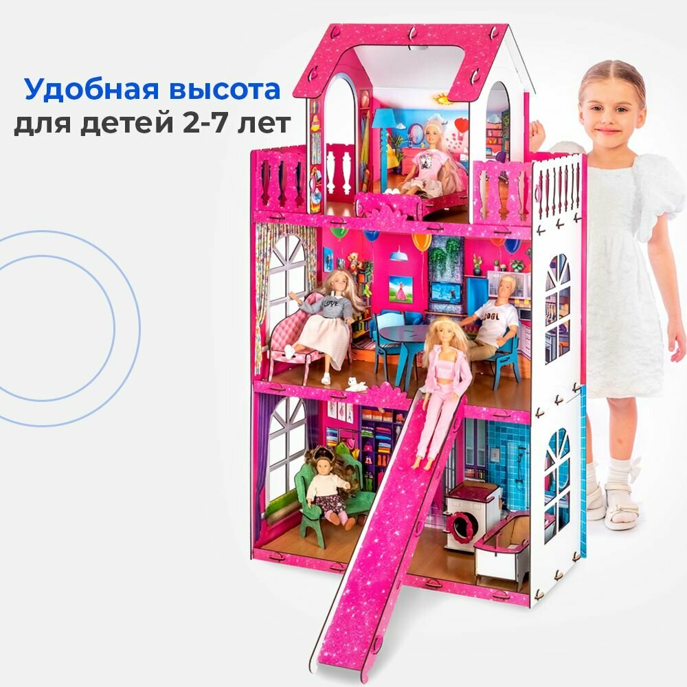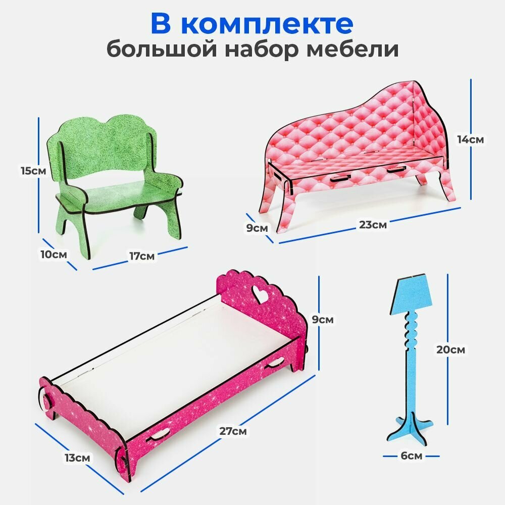 Купить Кукольный домик с мебелью для кукол Барби и других до 30 см, Pink