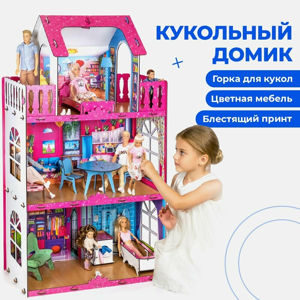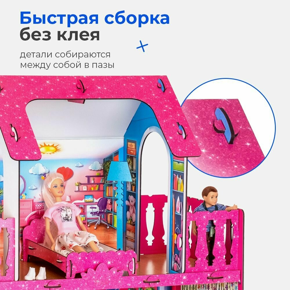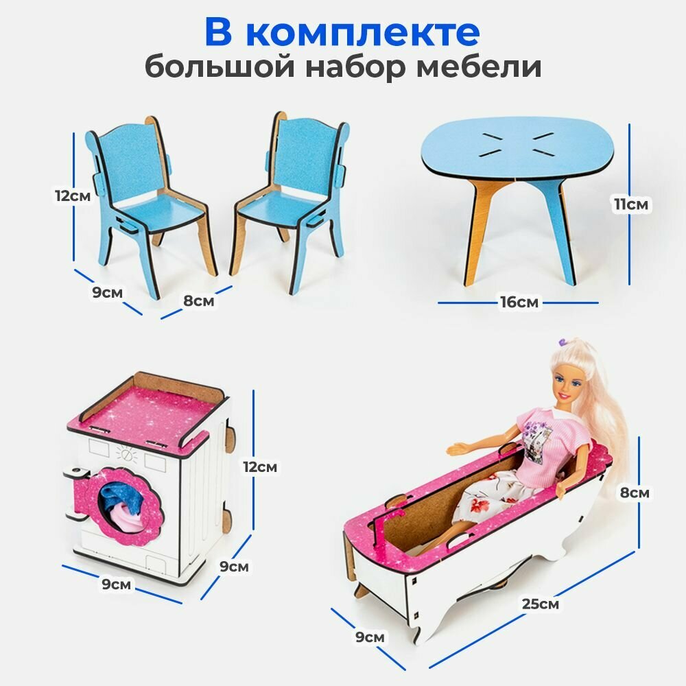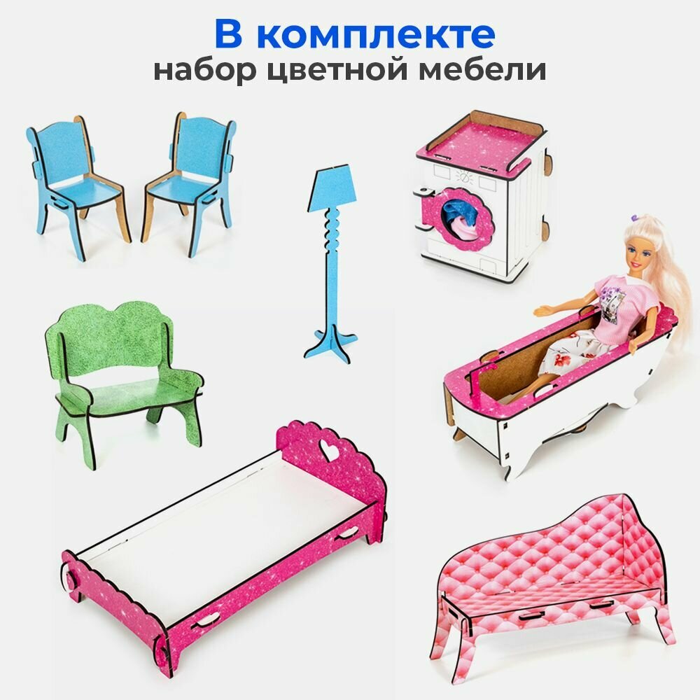 Купить Кукольный домик с мебелью для кукол Барби и других до 30 см, Pink