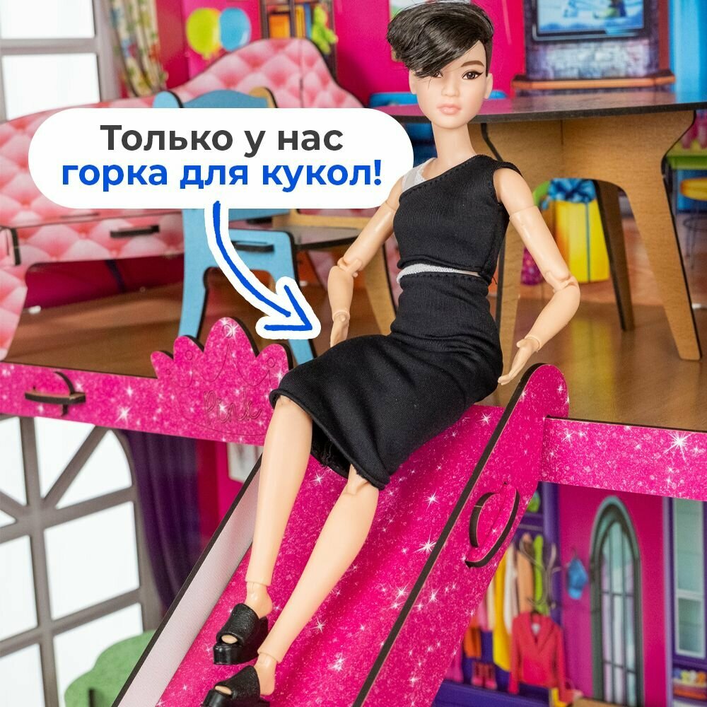 Кукольный домик с мебелью для кукол Барби и других до 30 см, Pink интересное:
