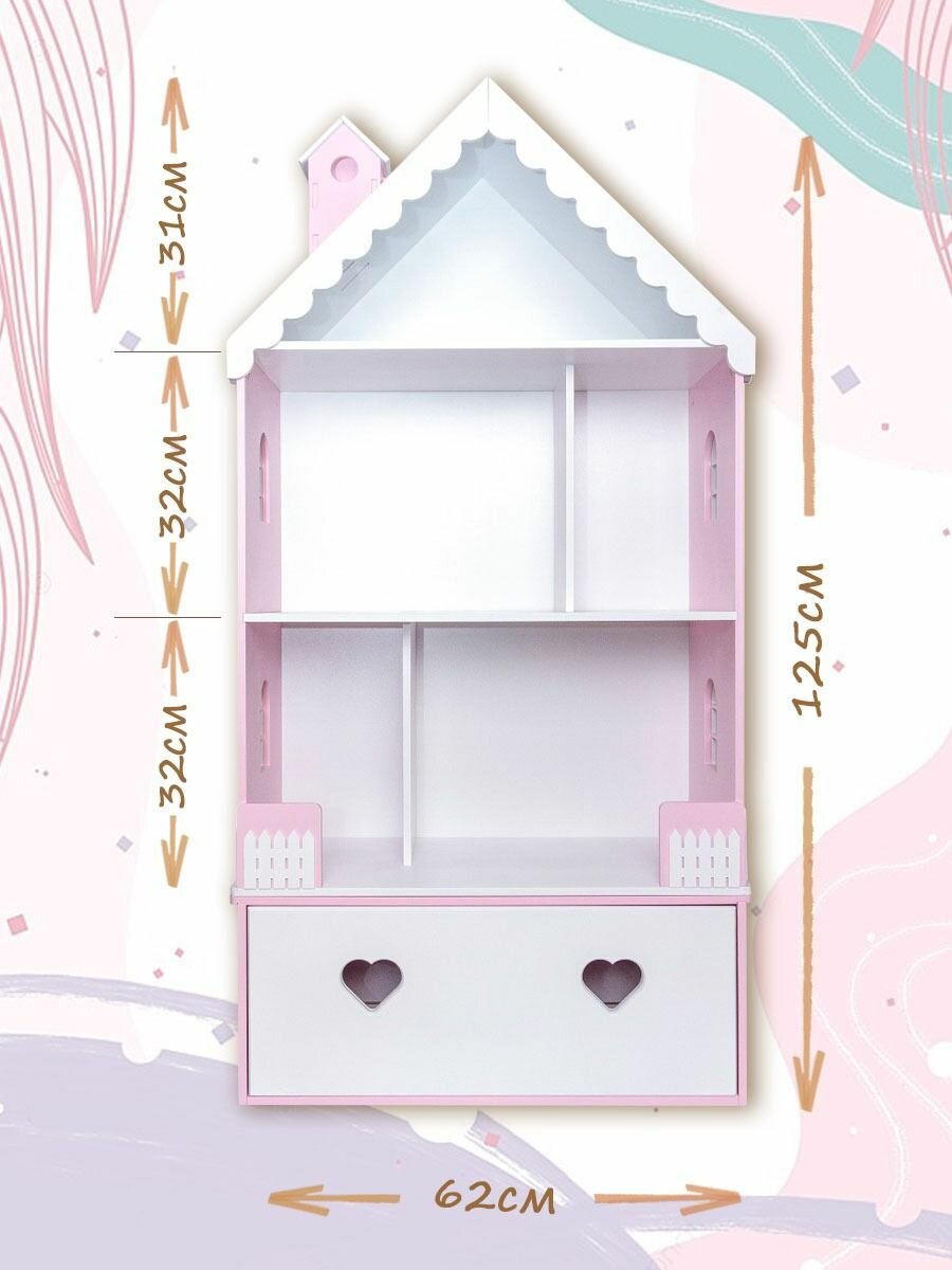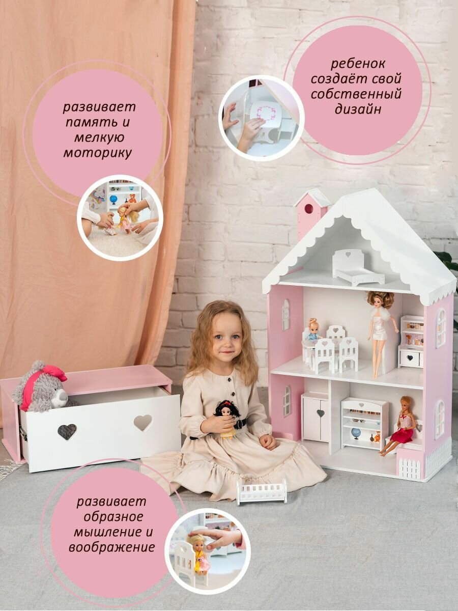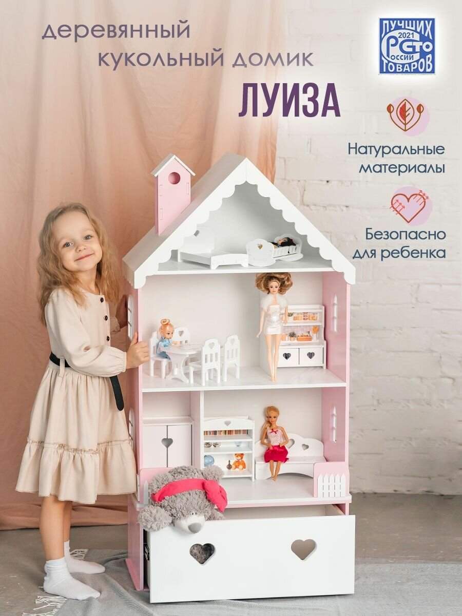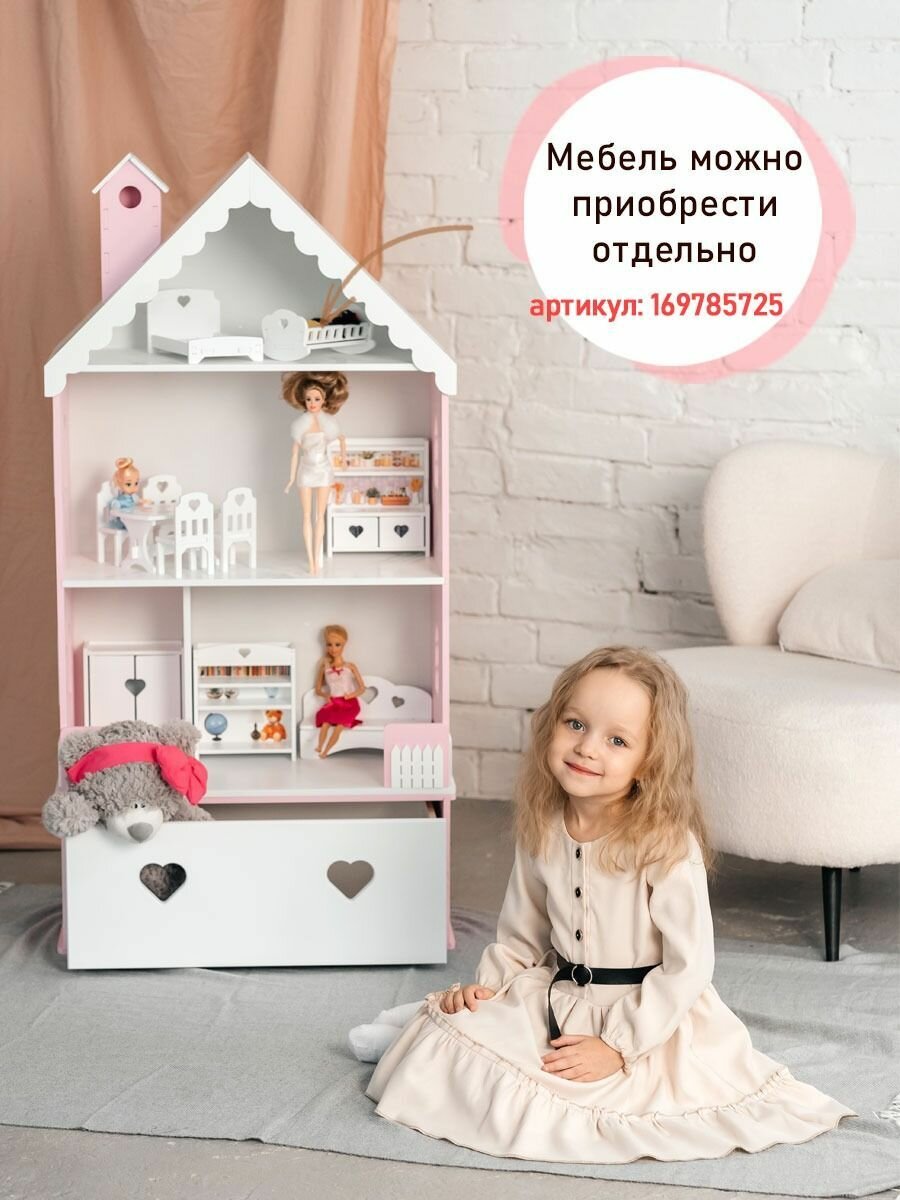 Кукольный домик деревянный с комодом Луиза для кукол до 32 см розово-белый интересное: