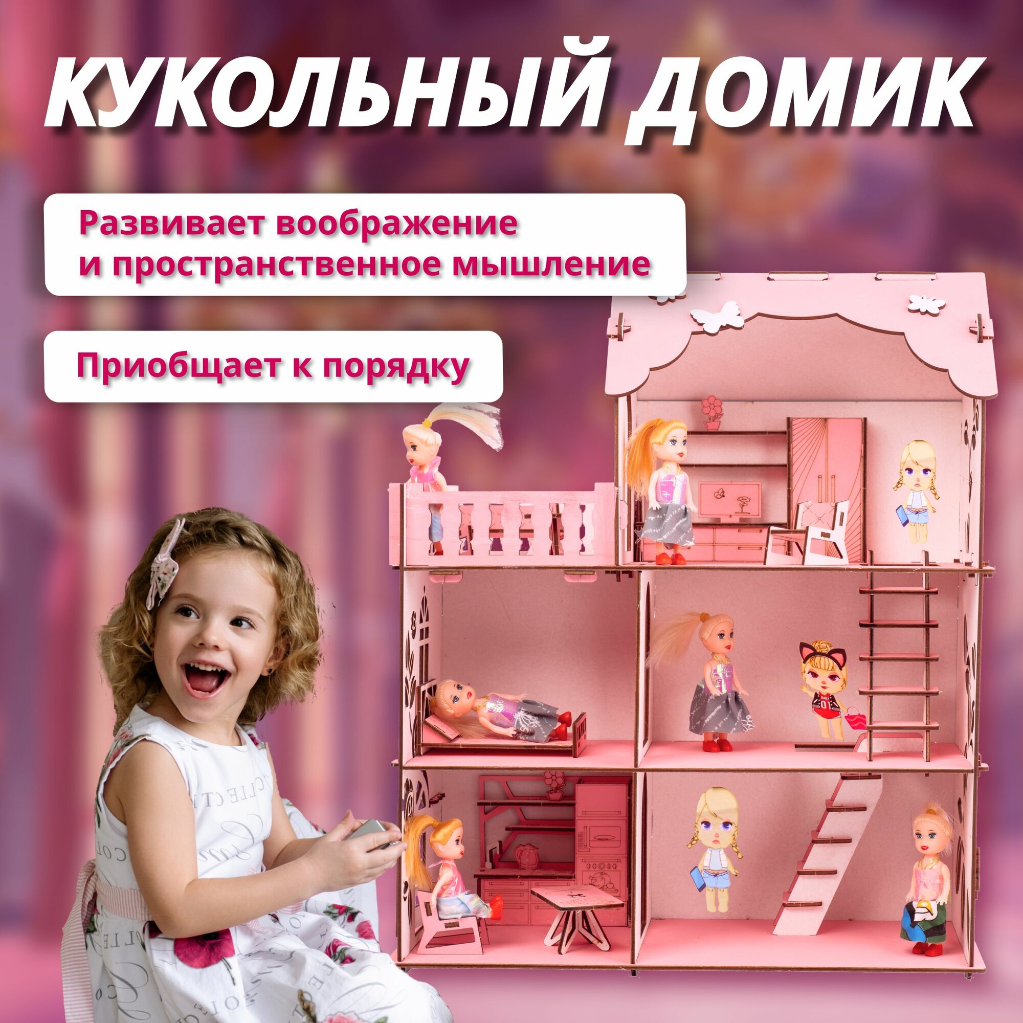Ниже Вы можете прочитать отзывы на Деревянный кукольный домик с мебелью для девочек, ознакомится с подробными характеристиками, посмотреть интересные обзоры и фотографии на Деревянный кукольный домик с мебелью для девочек.