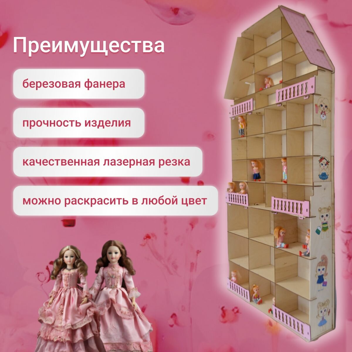 Деревянный кукольный домик для девочек; полка-конструктор для игрушек; подарок на день рождение ребенку интересное: