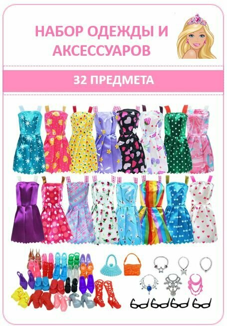 Набор одежды, обуви и аксессуаров для куклы Барби 32 предмета интересное: