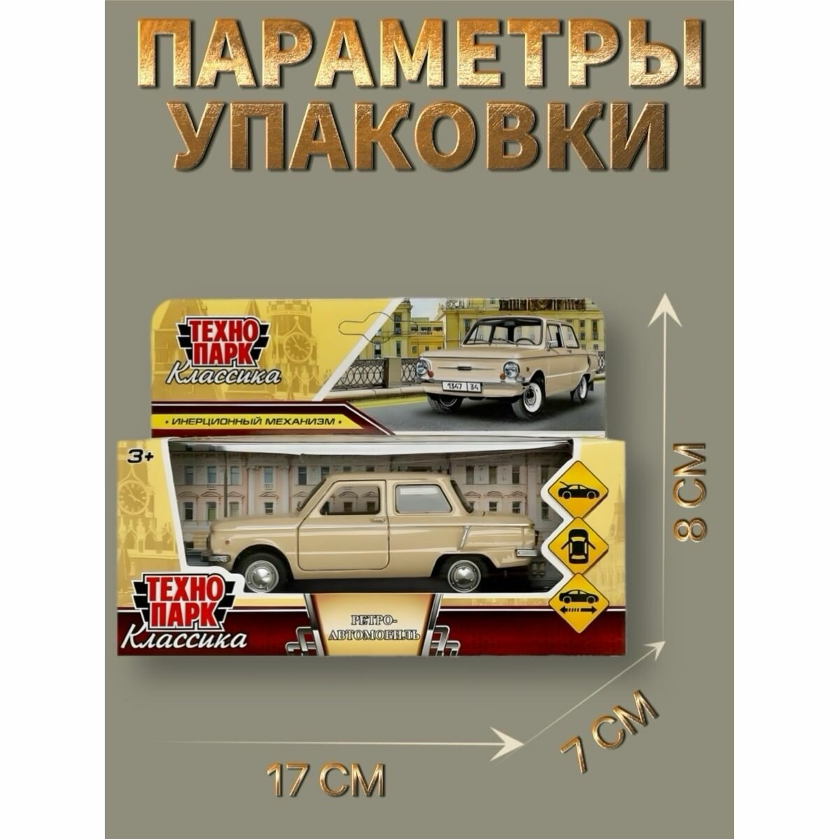 | Особенности | батарейки в комплекте / детская / коллекционная / крутится руль / открывается капот/багажник / открываются дверцы / советские машинки / звук / свет |