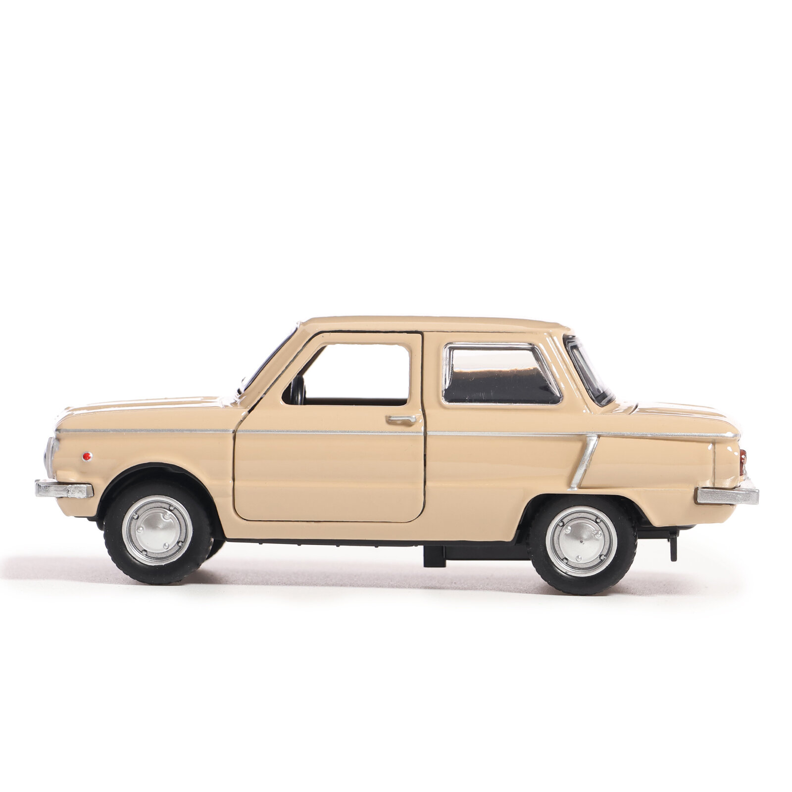 Машинка детская Запорожец ЗАЗ-968А 12 см, Технопарк, бежевая, открываются двери и багажник