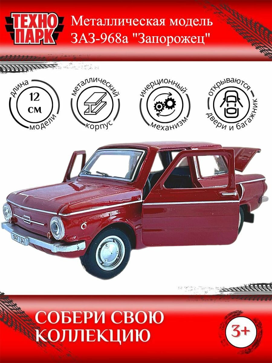 Машина металлическая инерционная ЗАЗ-968А запорожец 12 см Цвет Красный технопарк ZAZ968A-12-RD