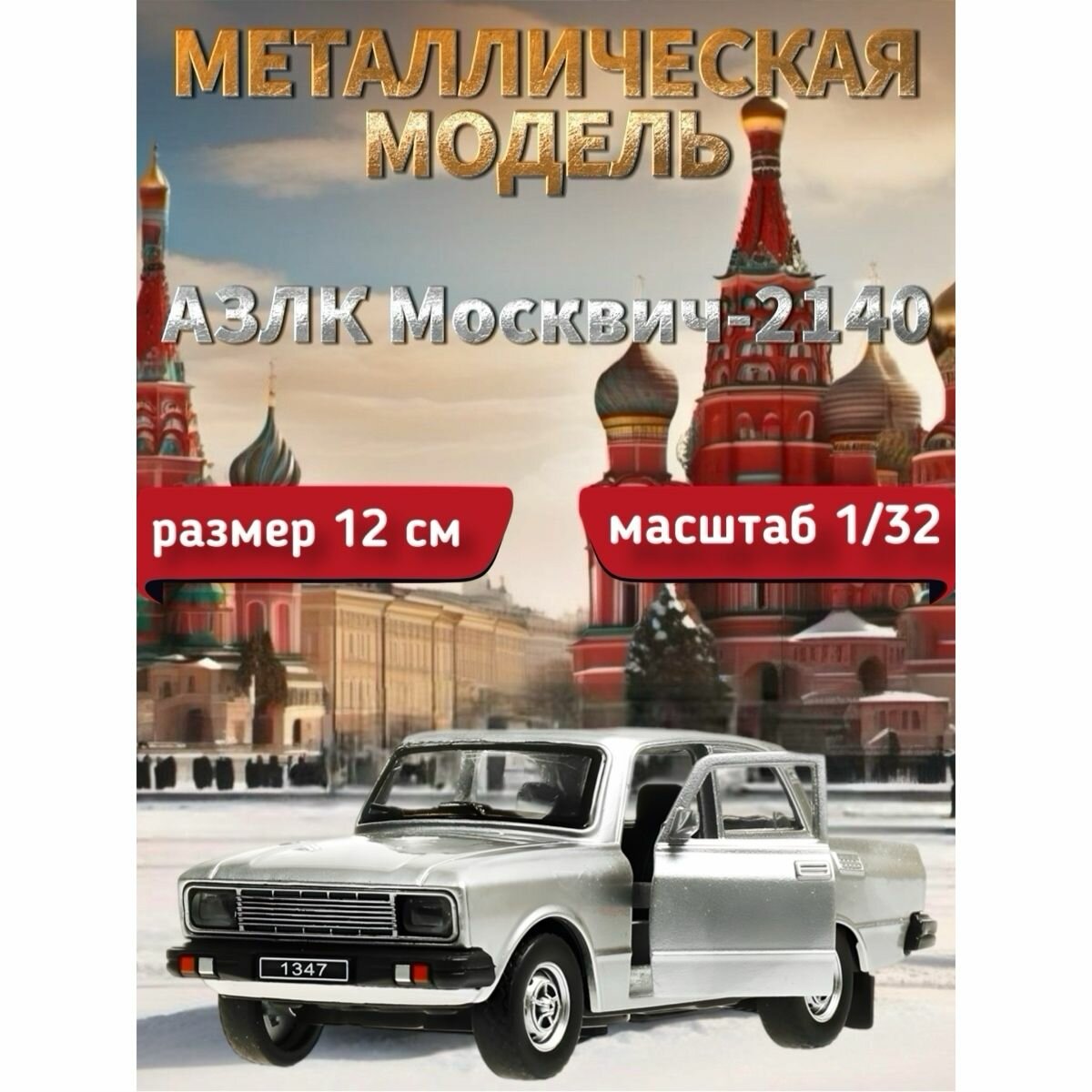 Модель Технопарк АЗЛК Москвич-2140SL серебро металл, без света И звука