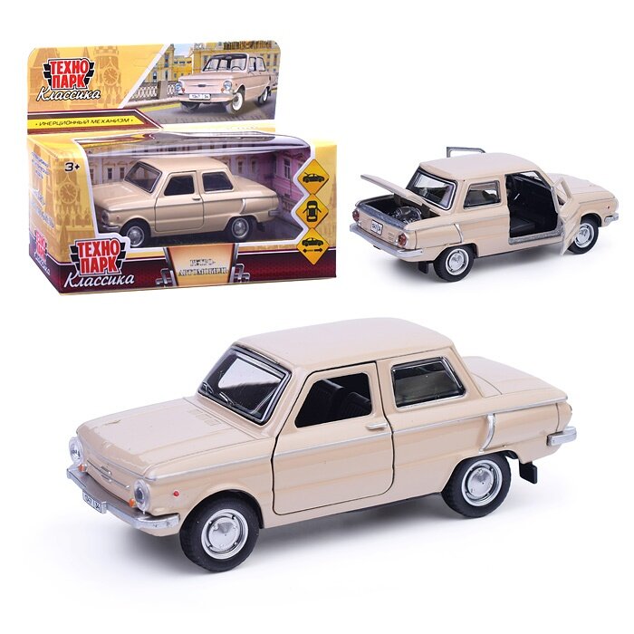 Купить Машинка ЗАЗ 968А, коллекционная, металлическая, бежевая, Технопарк, 12 см