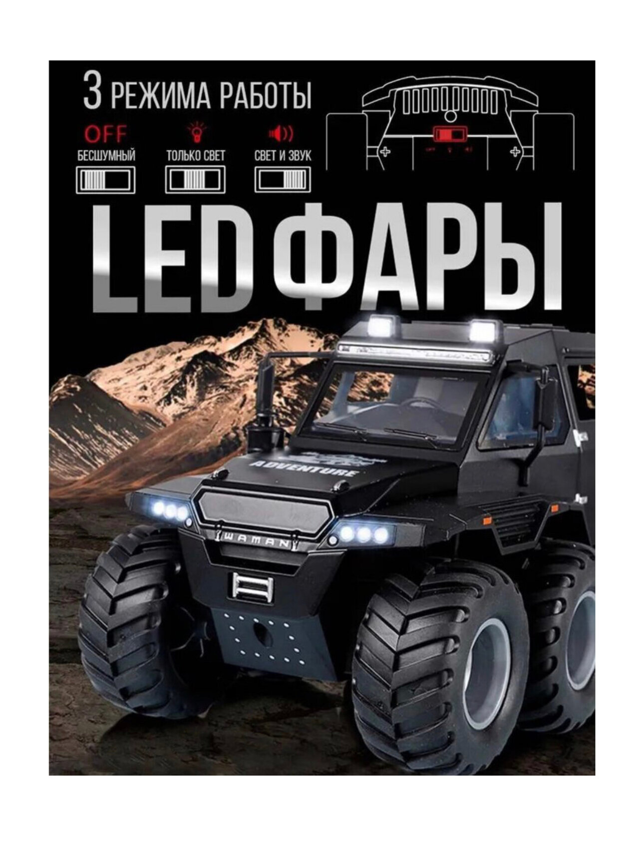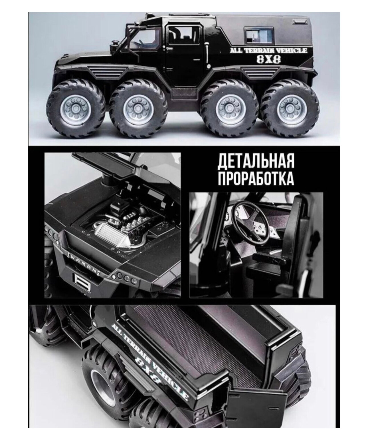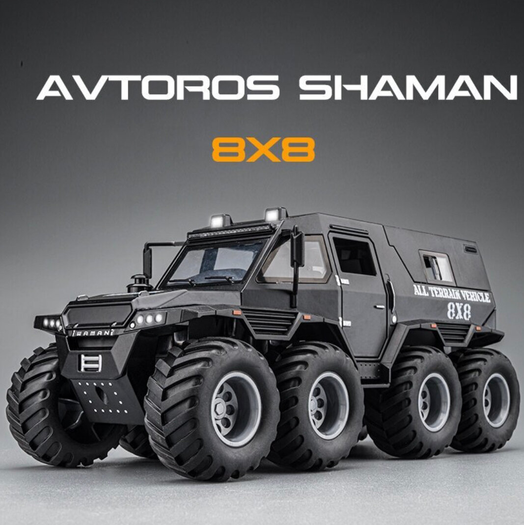 Коллекционная машинка вездеход Шаман SHAMAN Avtoros 8x8 1:24 (металл,свет,звук) интересное:
