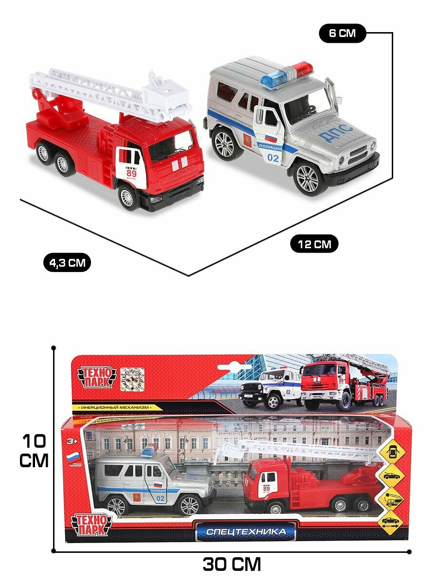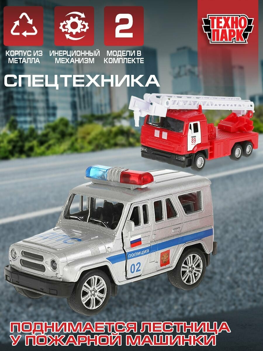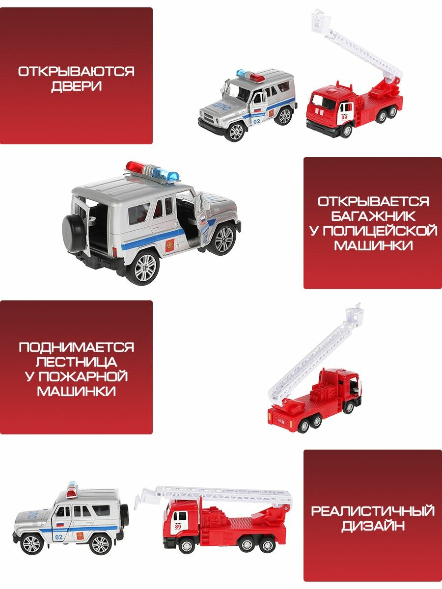 Набор машинок Технопарк Спецтехника, Полиция и пожарная, инерционные SB-19-24-WB