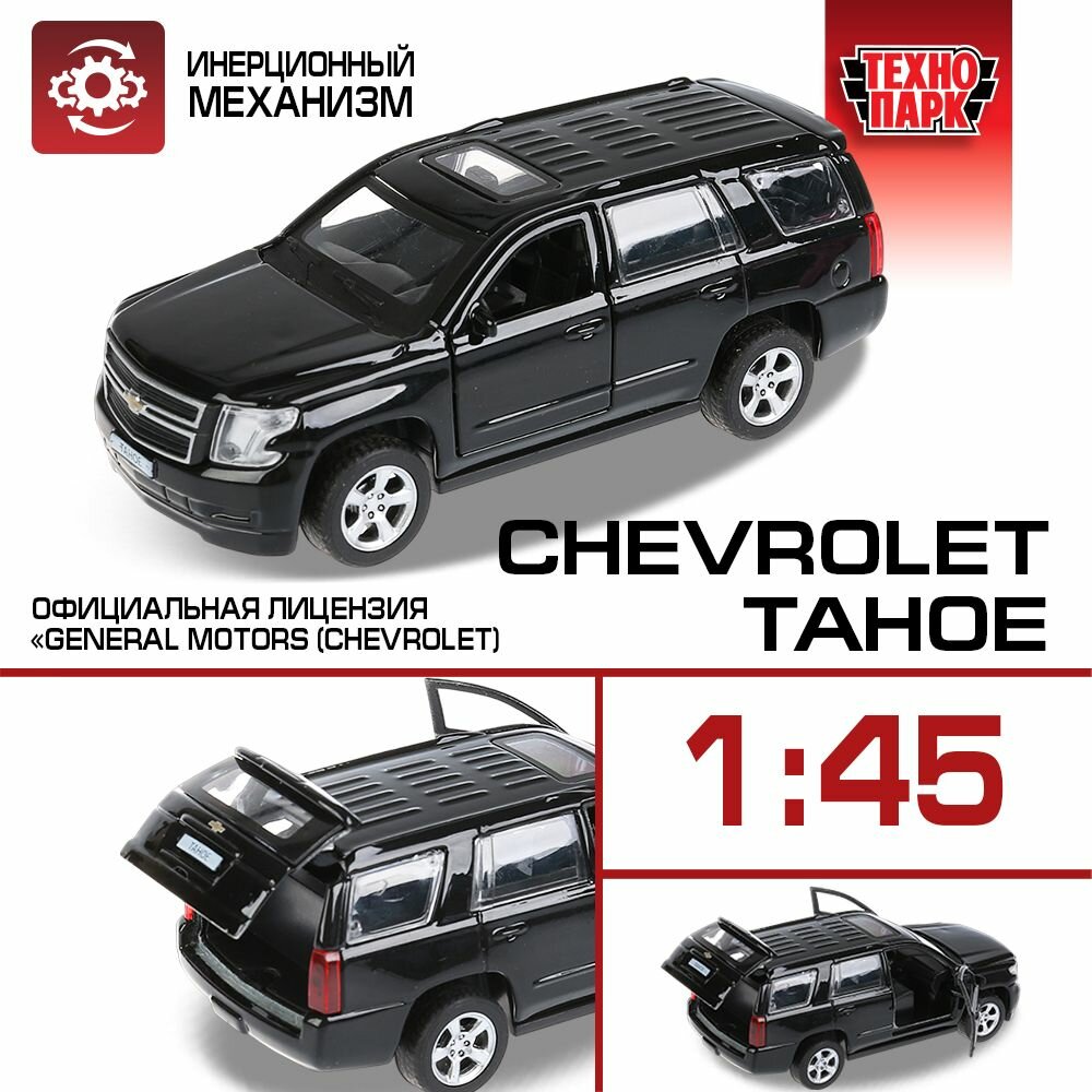 Машинка игрушка детская для мальчика Chevrolet Tahoe Технопарк металлическая модель коллекционная инерционная с открывающимися дверьми черная 12 см