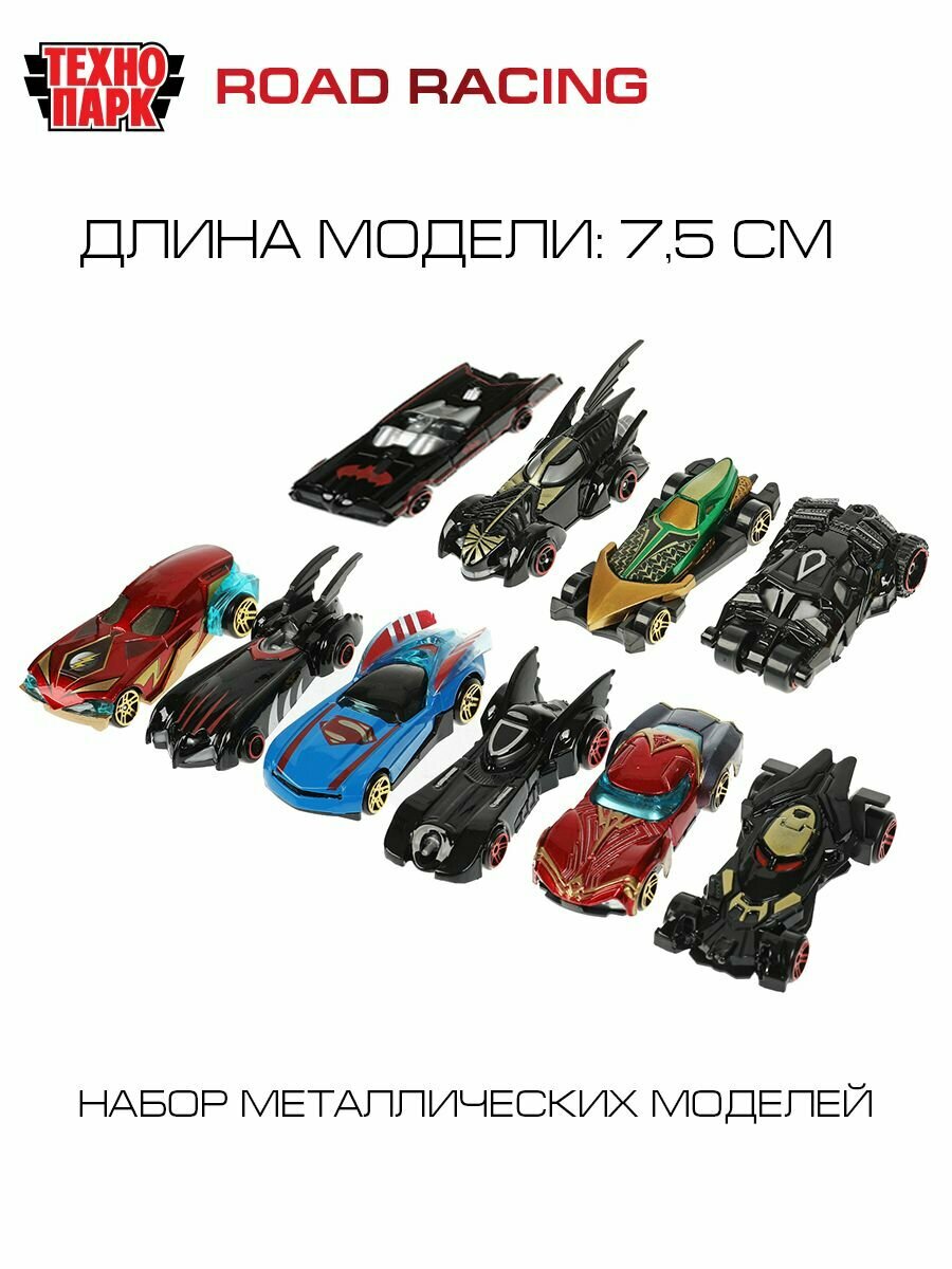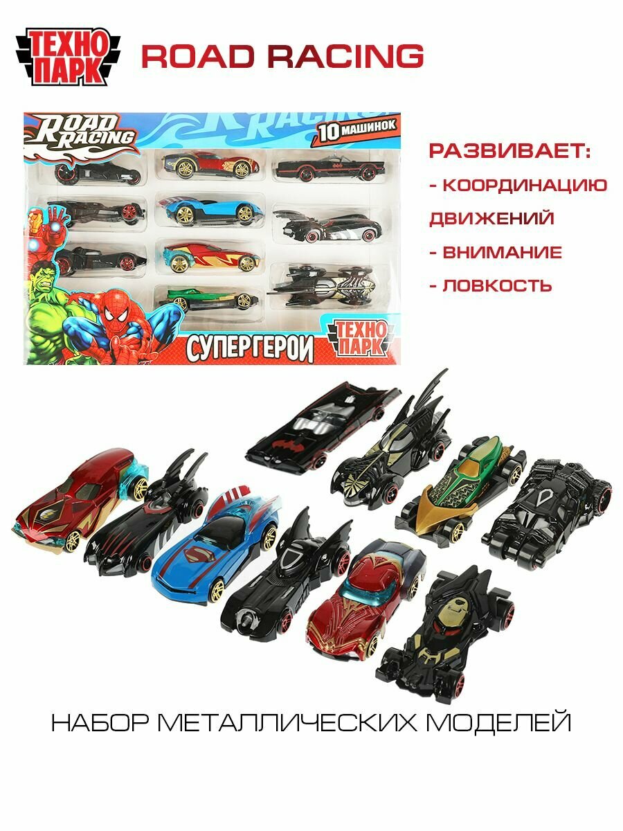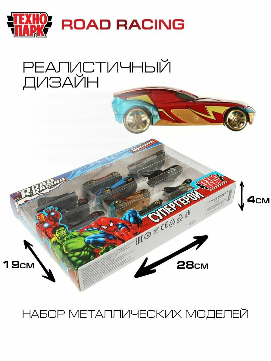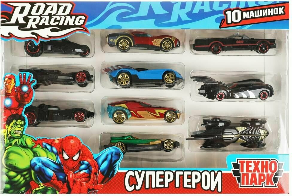 Купить Машина металл Роад Рейсинг набор супергерои, 7,5 см, 10 шт (в асс) Технопарк RR-SET-121-R