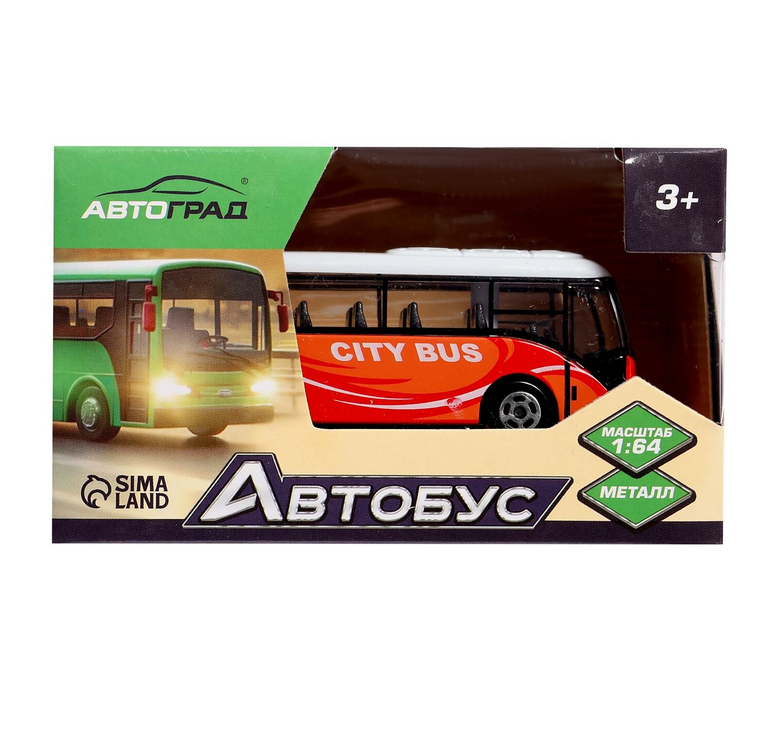 Автоград Автобус металлический "Междугородний", масштаб 1:64, №SL-2515 цв:красный