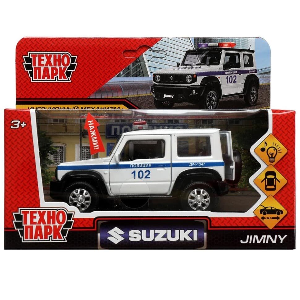 Машинка детская Полиция Suzuki Jimny 11.5 см, Технопарк, белая, открываются двери и багажник, металлический корпус