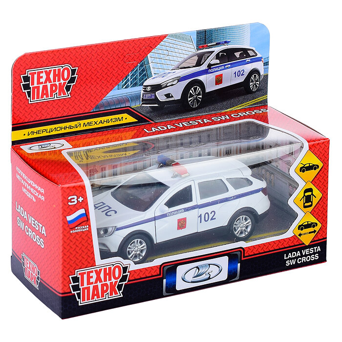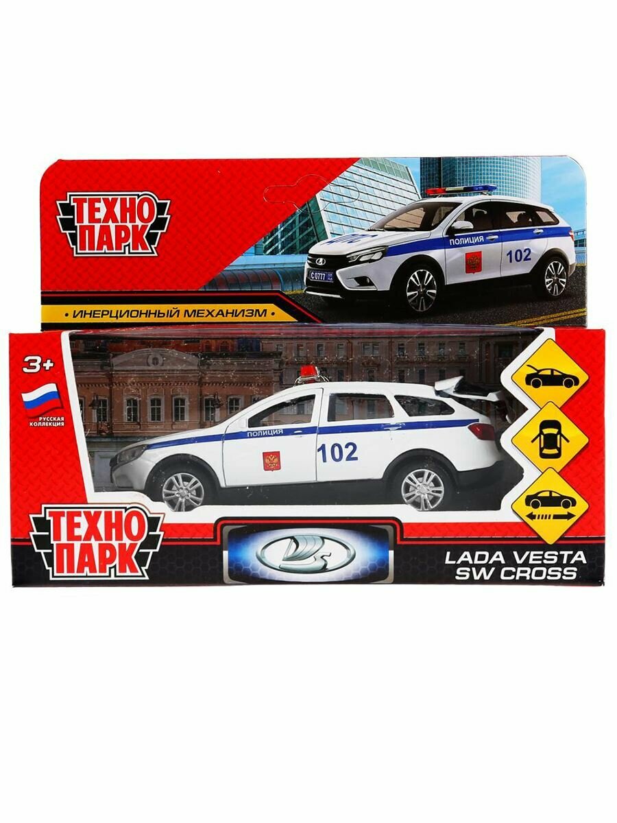 Купить Машина Lada Vesta SW Cross Полиция 12 см белая металл инерция Технопарк VESTACROSS-12POL-WH