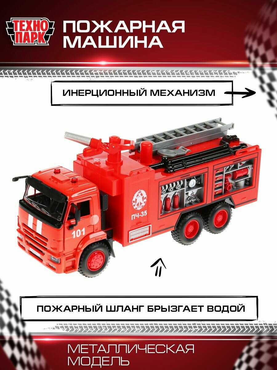 Купить Машинка Технопарк Пожарная машина 21 см свет и звук брызгает водой X600-H09064-R