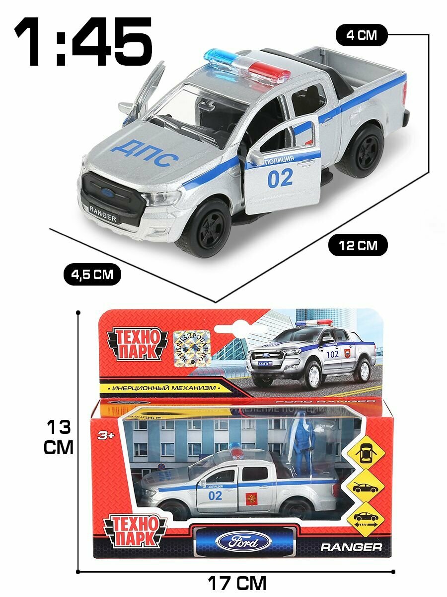 Купить Машина Ford Ranger Пикап Полиция 12 см + фигурка 4,5 см металл инерция Технопарк SB-18-09-FR-P+FG-WB