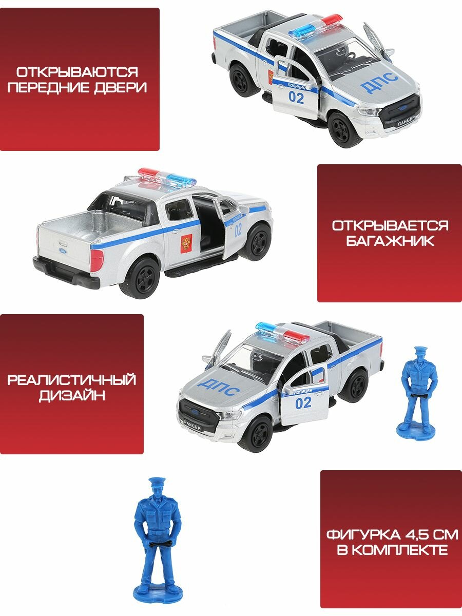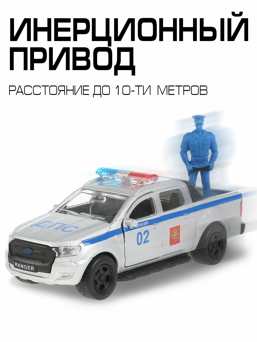 Машина Ford Ranger Пикап Полиция 12 см + фигурка 4,5 см металл инерция Технопарк, SB-18-09-FR-P+FG-WB