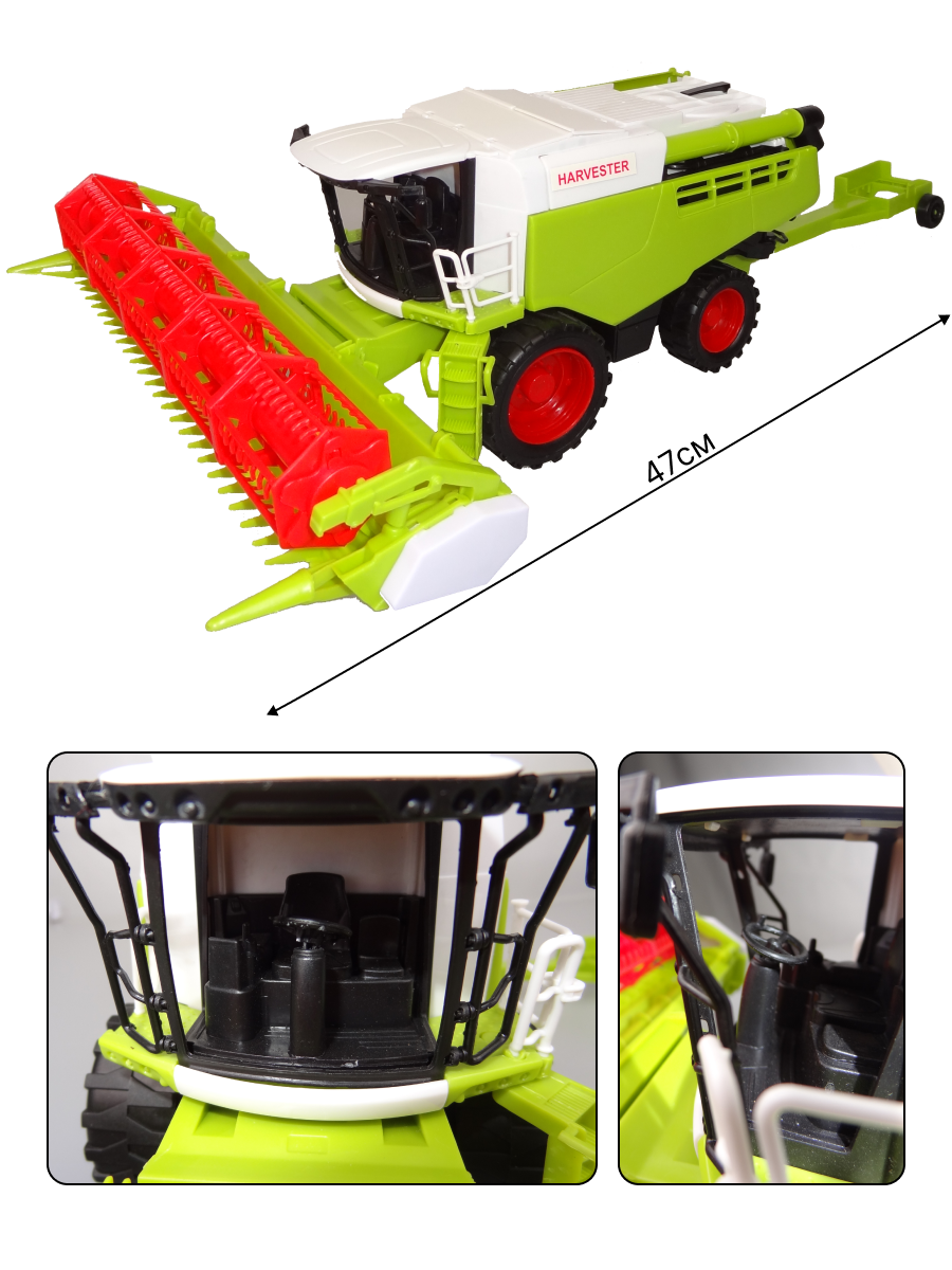 Купить Игрушка машинка инерционная сельскохозяйственный Комбайн, размер комбайна вместе с сеялкой 47х24х12 см, 8889-4