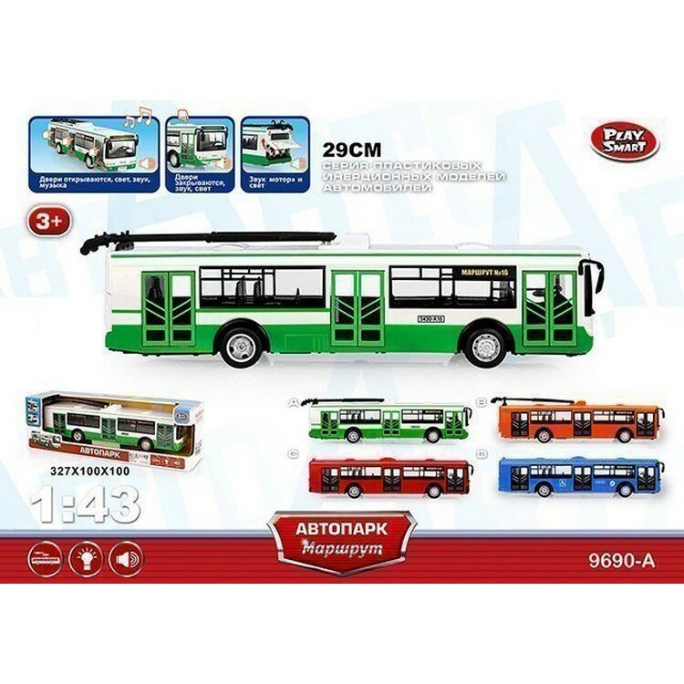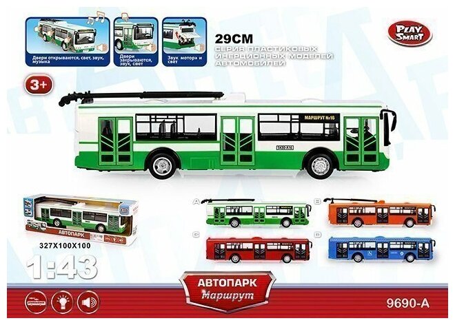 Троллейбус инерционный Play Smart со световыми и звуковыми эффектами, открываются двери, 9690-A интересное: