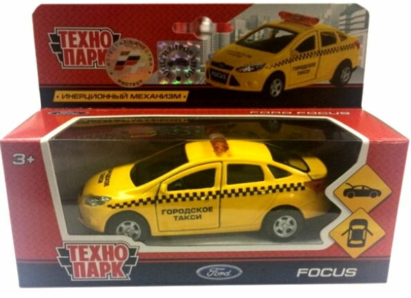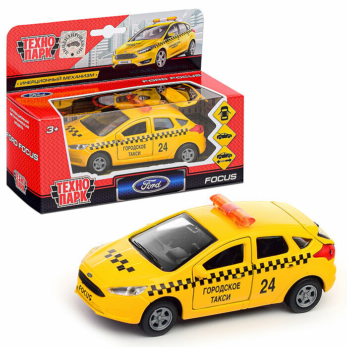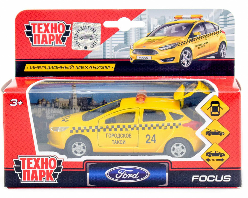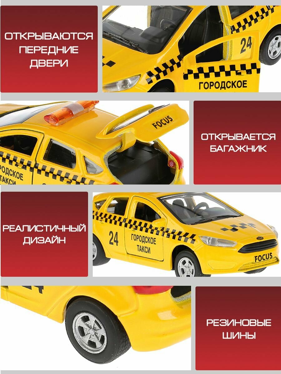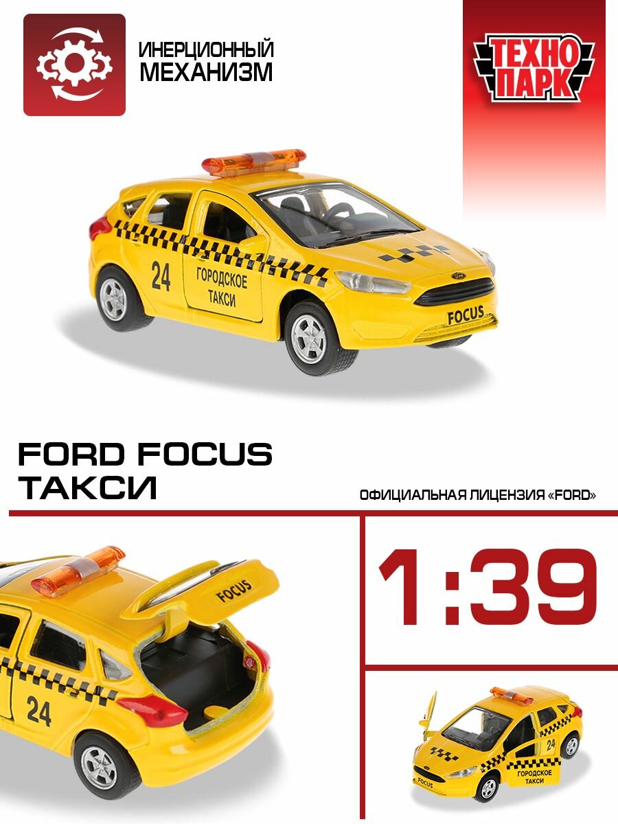 Машина металлическая "Ford Focus Хэтчбек Такси" 12 см, открываются двери, инерционная Технопарк SB-17-81-FF-T-WB