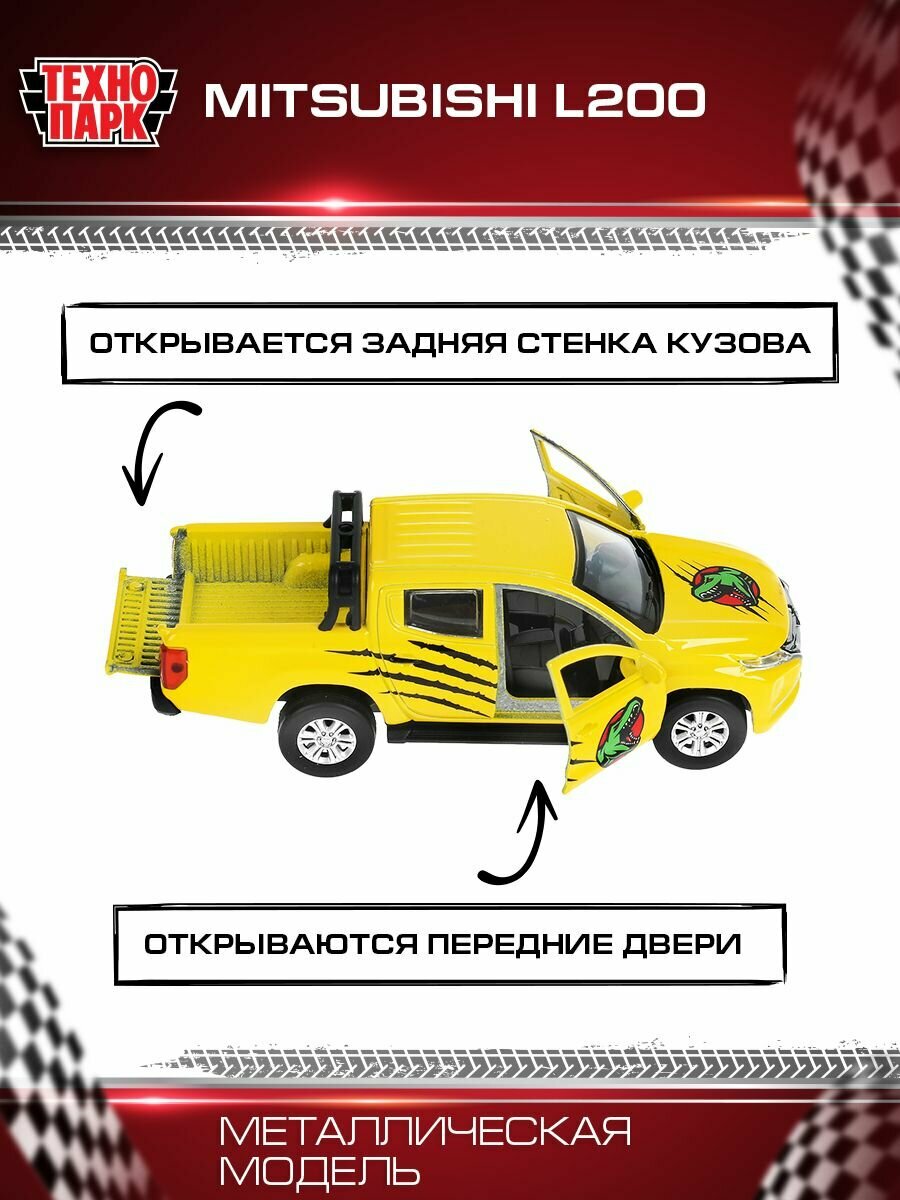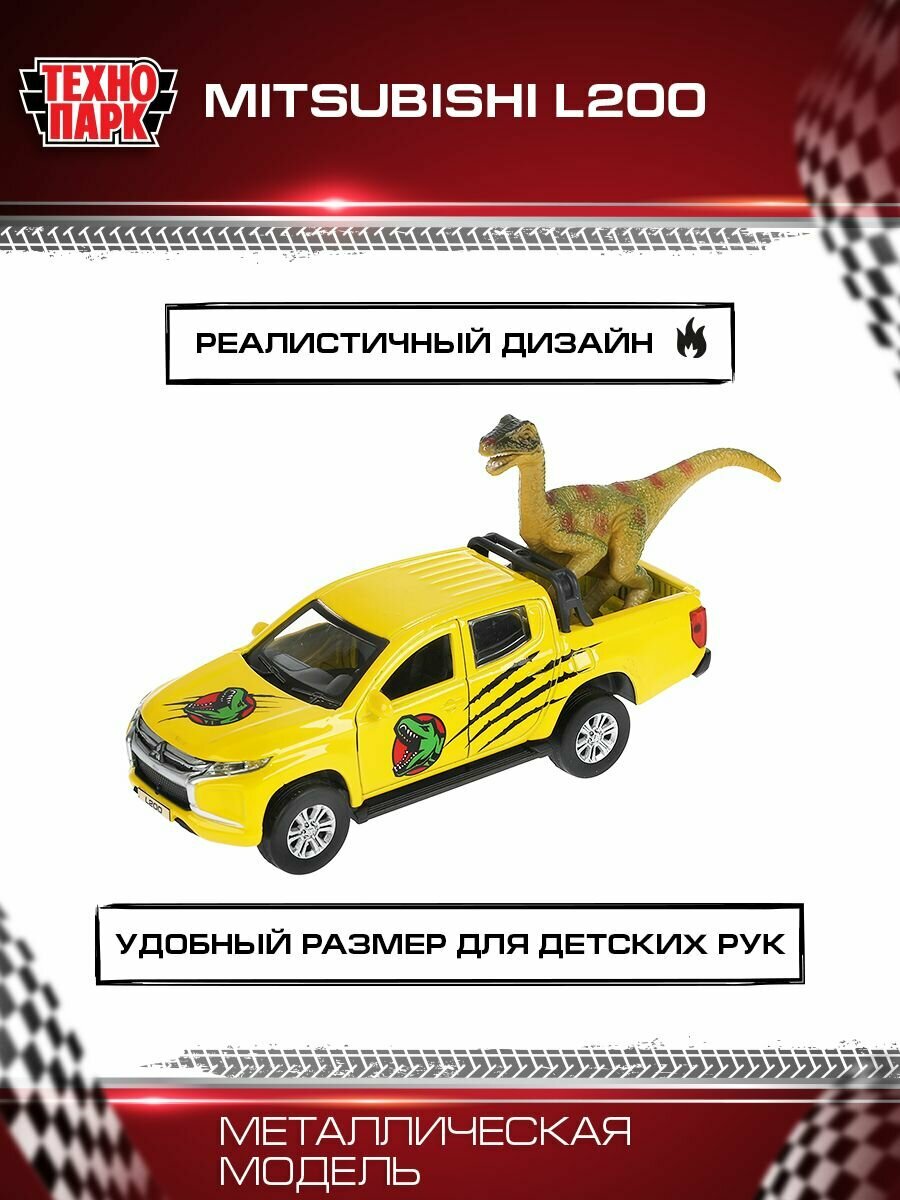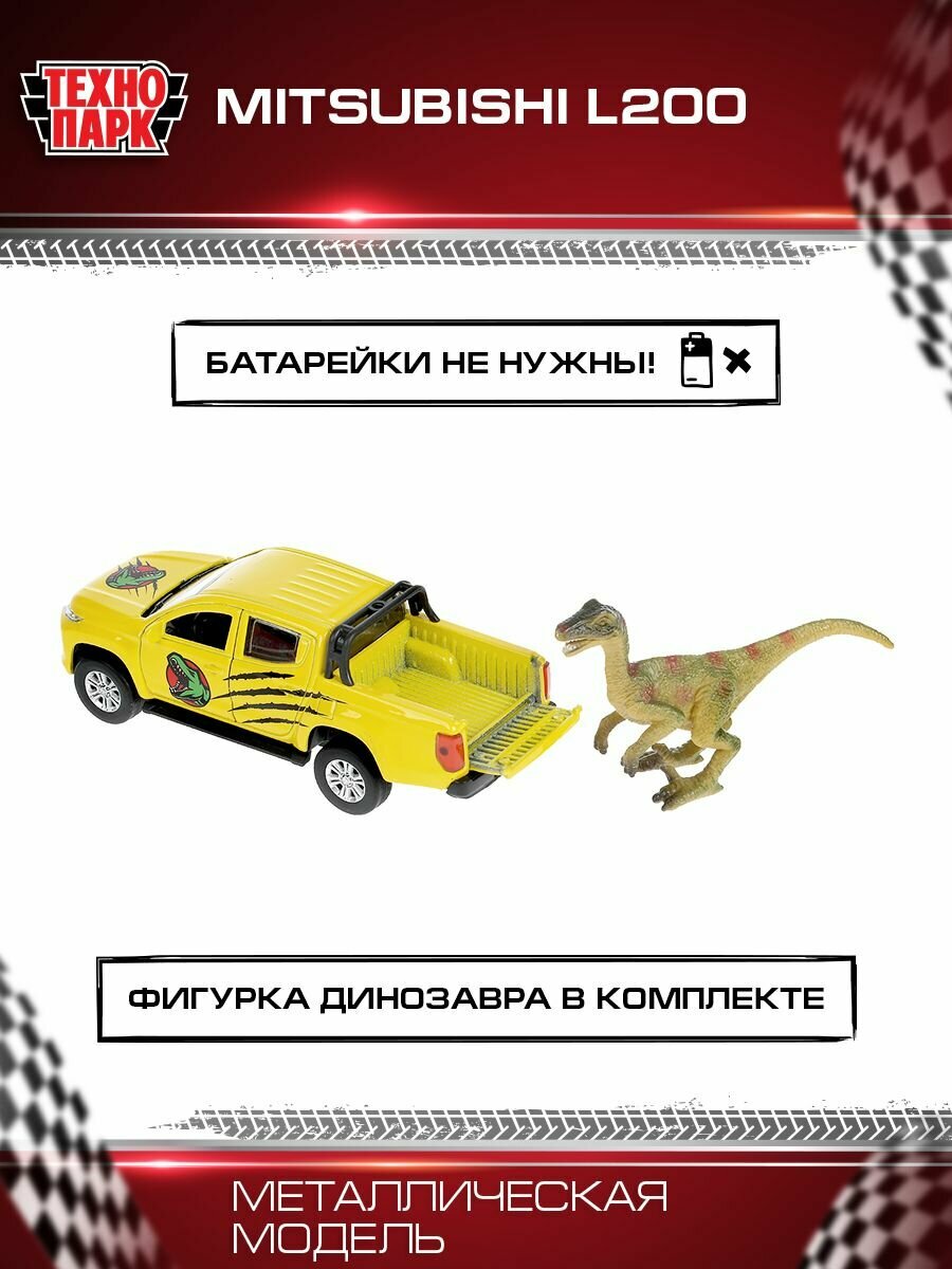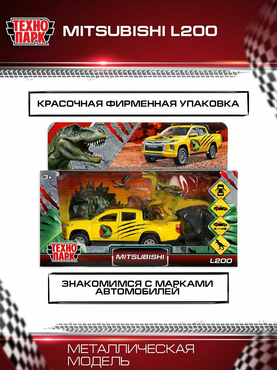Модель машины Технопарк Mitsubishi L200 пикап, инерционная, с динозавром L200-12DIN-DINО