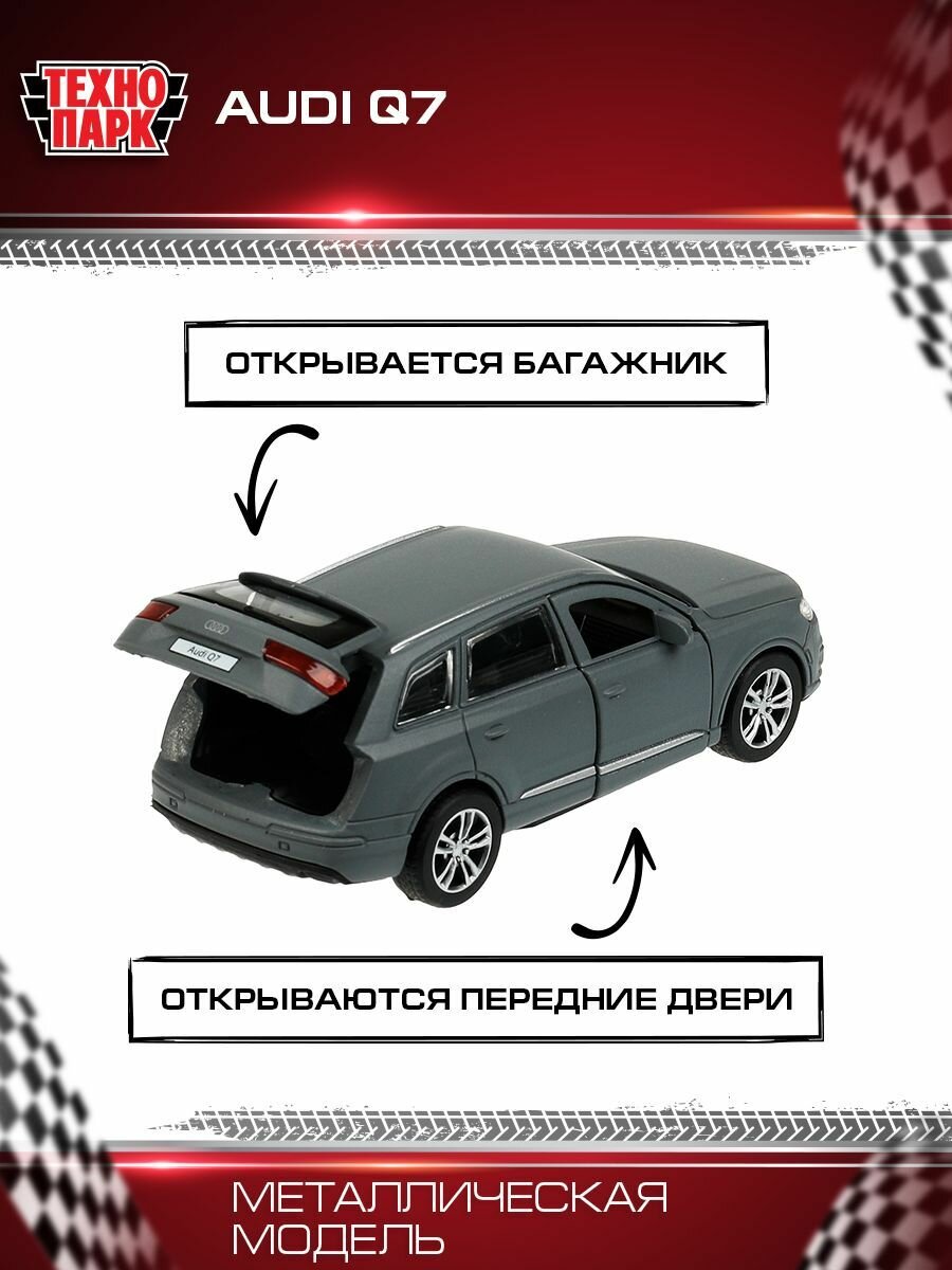 Машинка детская Audi Q7 12 см, Технопарк, серая, открываются двери и багажник, металлический корпус