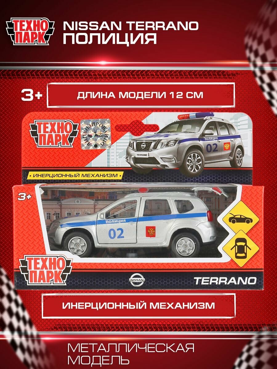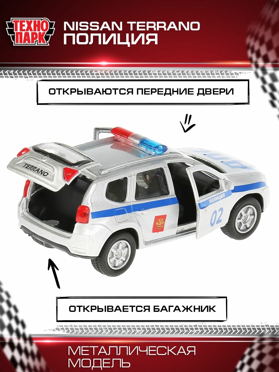 Машинка игрушка детская для мальчика металлическая Технопарк Nissan Terrano Полиция двери и багажник открываются 14 см