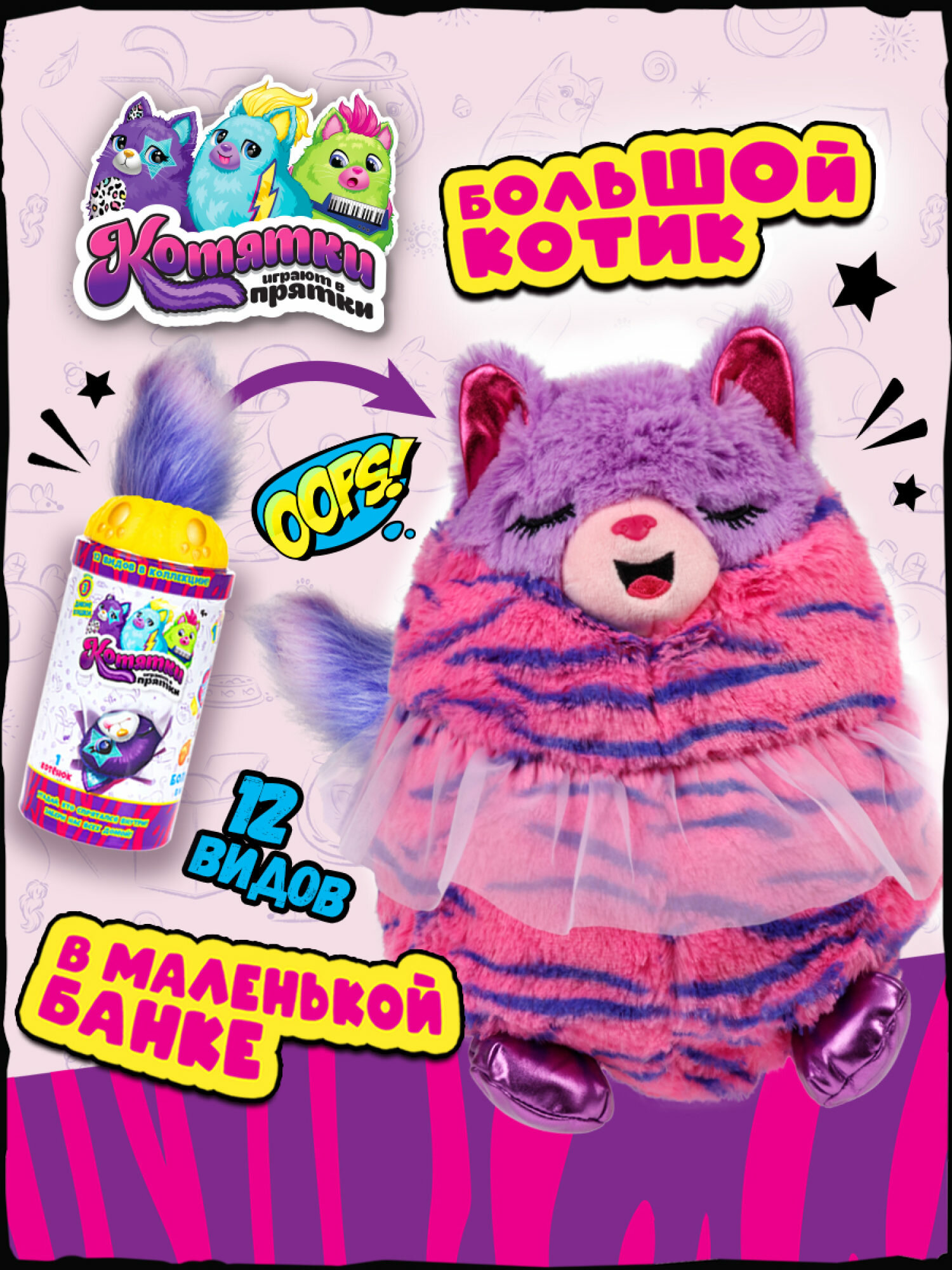 Купить Мягкая игрушка в банке. Котятки играют в прятки. Цвет в ассорт.