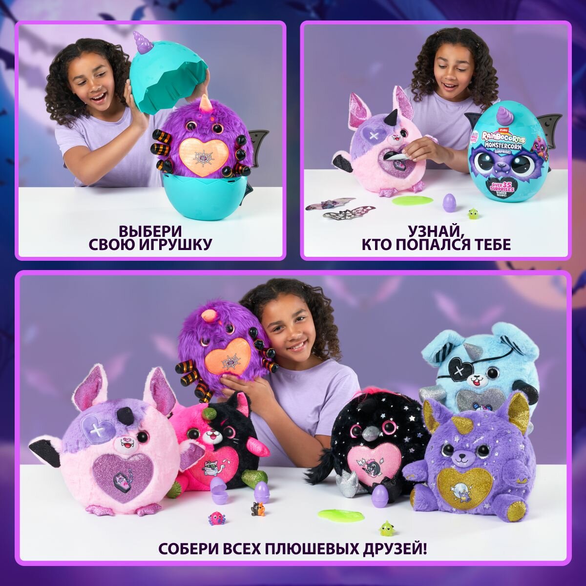 Большая плюшевая игрушка 30 см ZURU RAINBOCORNS MONSTERCORN серия 1 монстры, яйцо-сюрприз с наклейками и фигурками, детские крылья, подарок для девочки, 3+, 9297