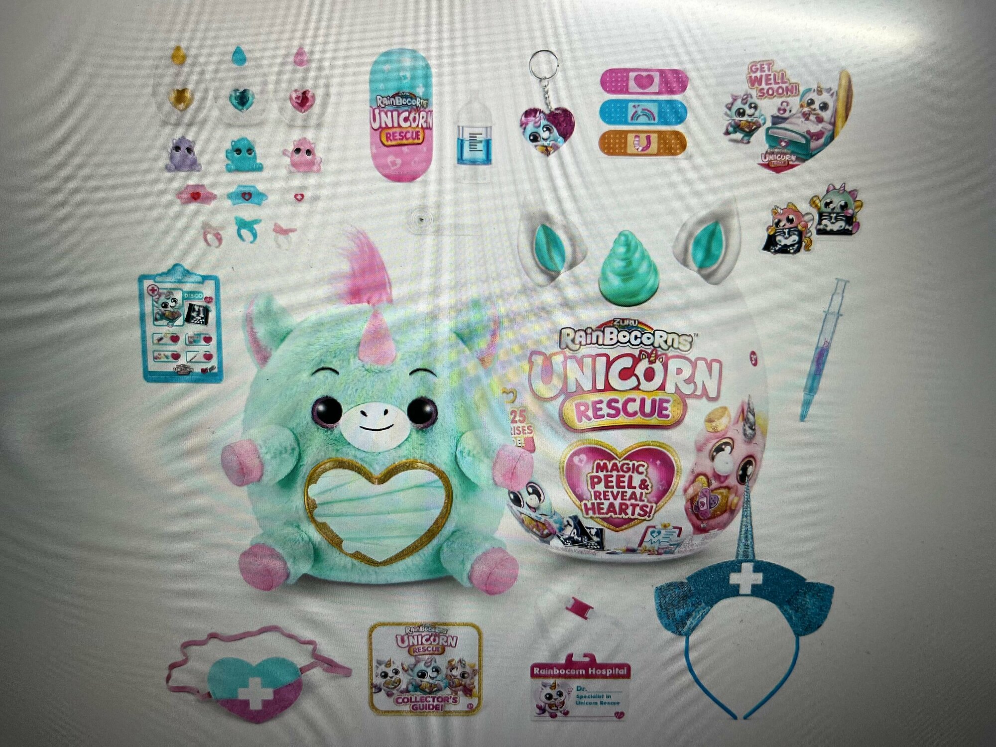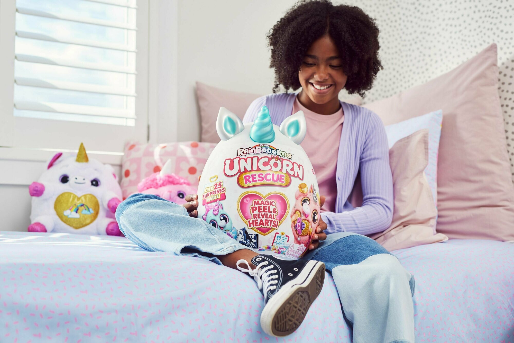 Купить Большая мягкая игрушка Единорог 30 см ZURU Rainbocorns Unicorn Rescue серия 4, яйцо-сюрприз с аксессуарами для волос, брелок, слайм, волшебная палочка, игрушка для девочки, 3+, 9262D