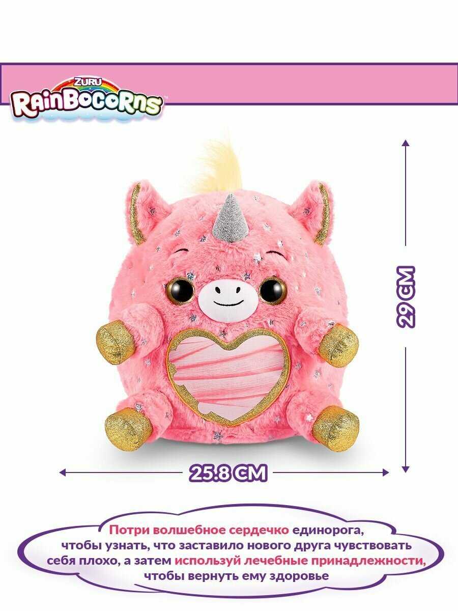 Большая мягкая игрушка 30 см Единорог со слаймом, брелок, наклейки ZURU Rainbocorns Unicorn Rescue серия 4, яйцо-сюрприз, в ассортименте, игрушки для девочек, 3+, 9262