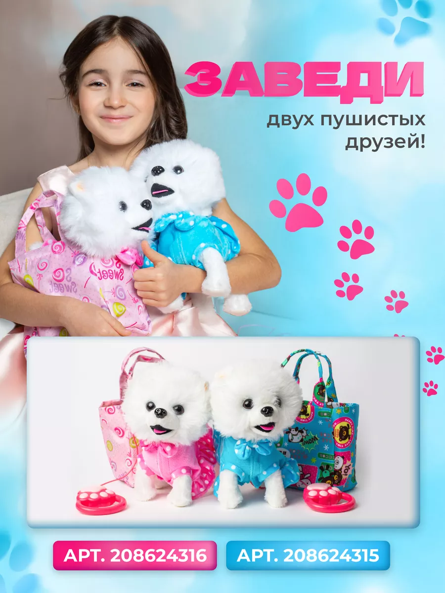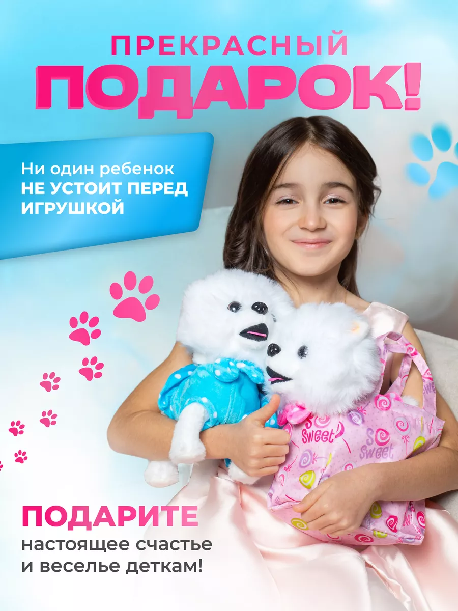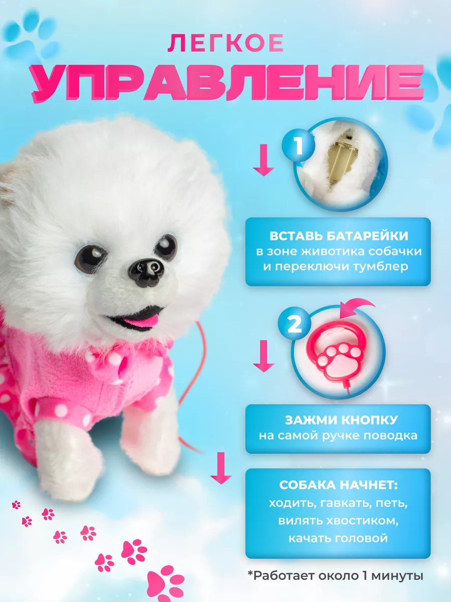 Интерактивная собачка игрушка мягкая на поводке лает, ходит, поёт песенку и виляет хвостиком в подарочной упаковке