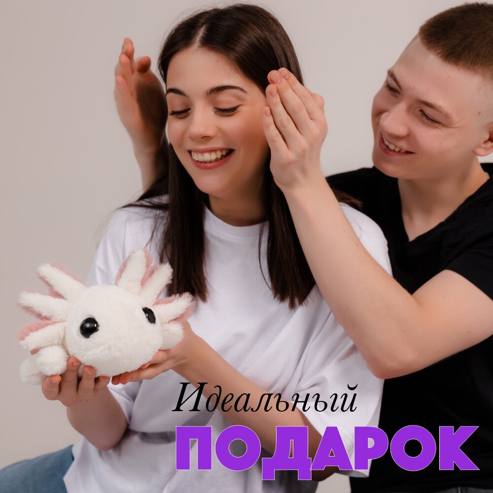 Аксолотль мягкая игрушка BOOMTS белый подарок на Новый год и день рождения ребенку