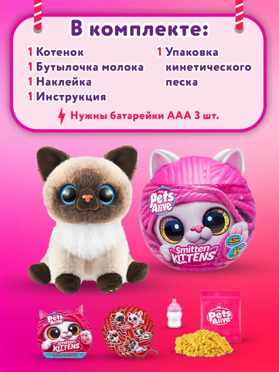 Купить Интерактивная игрушка ZURU Pets Alive Ласковый котенок с аксессуарами, звук, механический