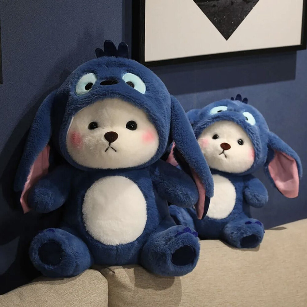 СохранитьМягкая игрушка "Мишка в костюме Стича" 40 см / Игрушка обнимашка антистресс плюшевый медведь в костюме с капюшоном интересное: