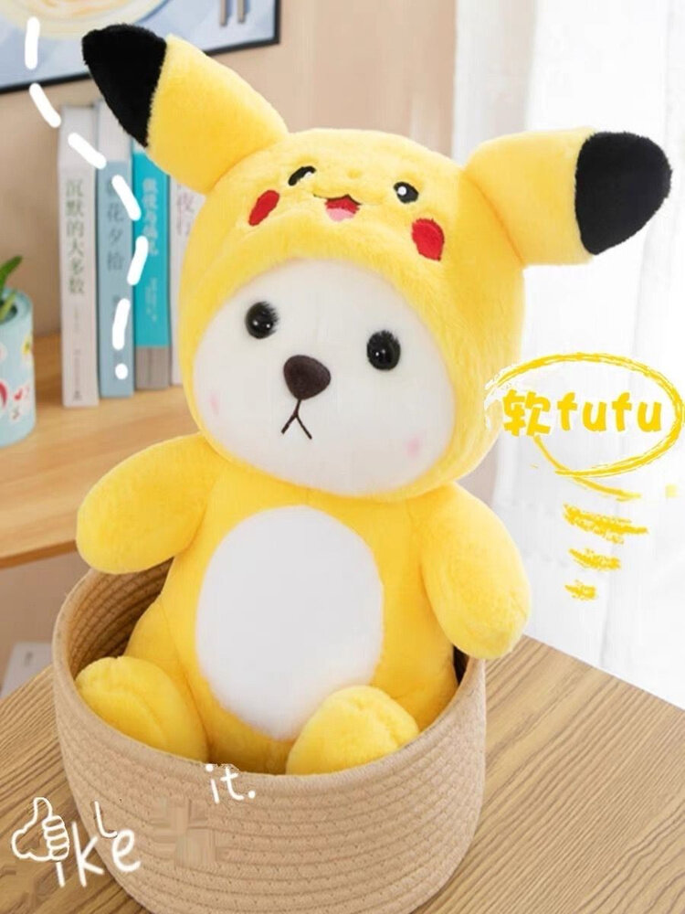 СохранитьМягкая игрушка "Мишка в костюме Пикачу" 40 см / Игрушка обнимашка антистресс плюшевый медведь в костюме с капюшоном интересное: