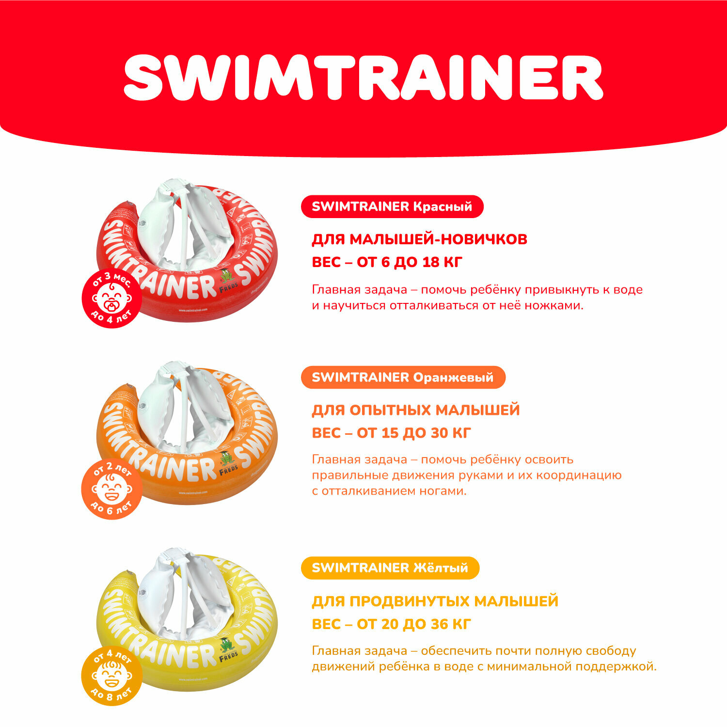 Надувной круг SWIMTRAINER «Classic» красный для обучения плаванию (3 мес.-4 года) интересное:
