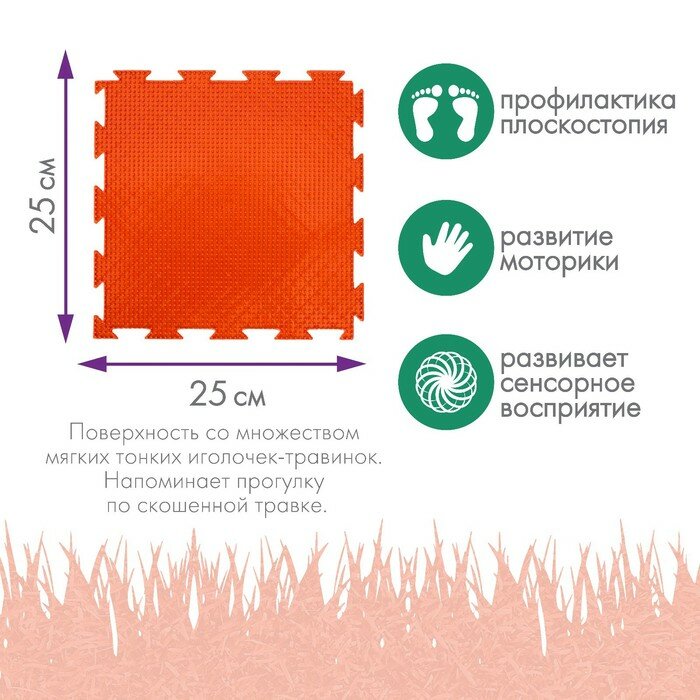 Купить Модульный массажный коврик ортодон «Трава», 1 модуль, жесткий, цвет микс