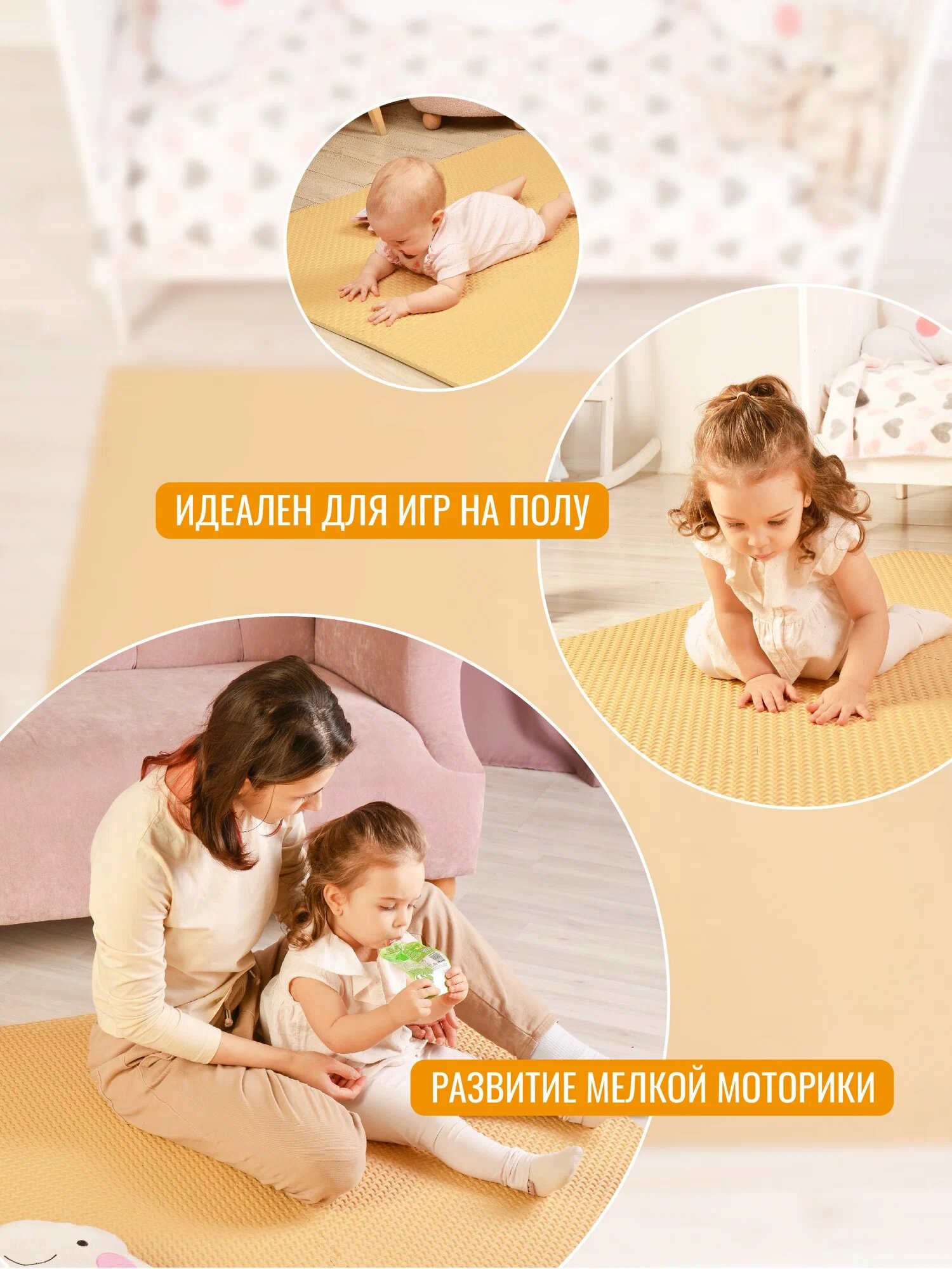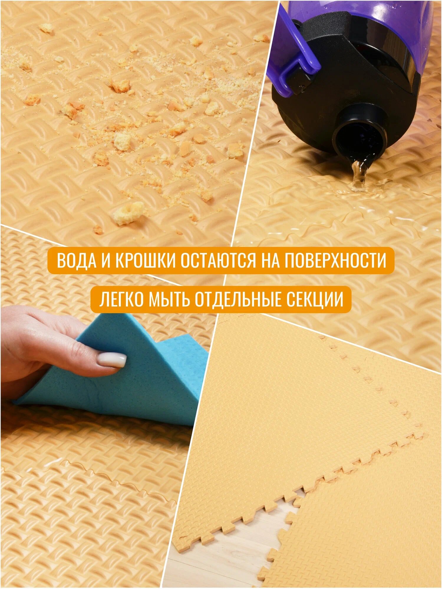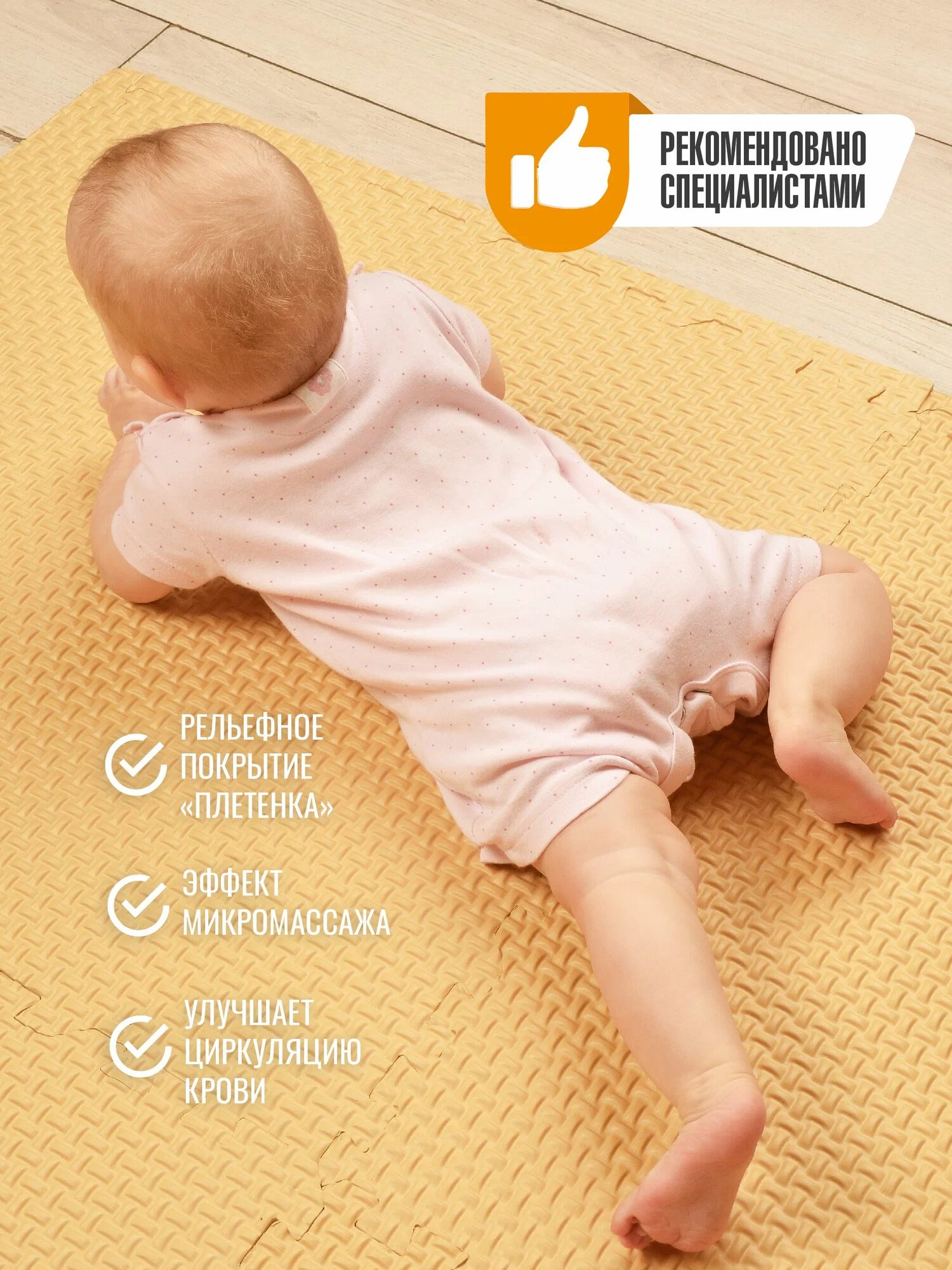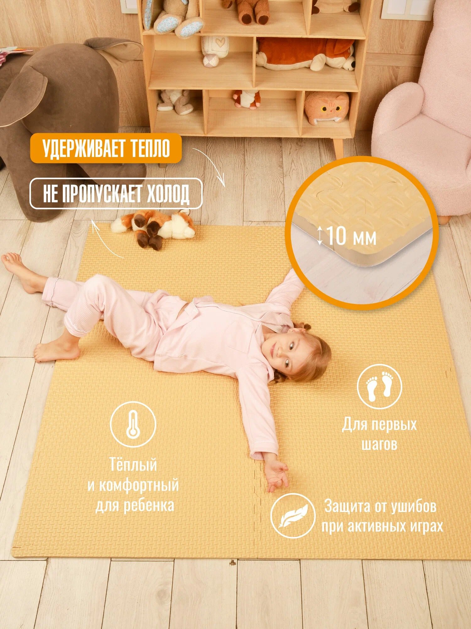 Мягкий детский коврик-пазл 33x33см, 9 сегментов, цвет бежевый, массажная поверхность