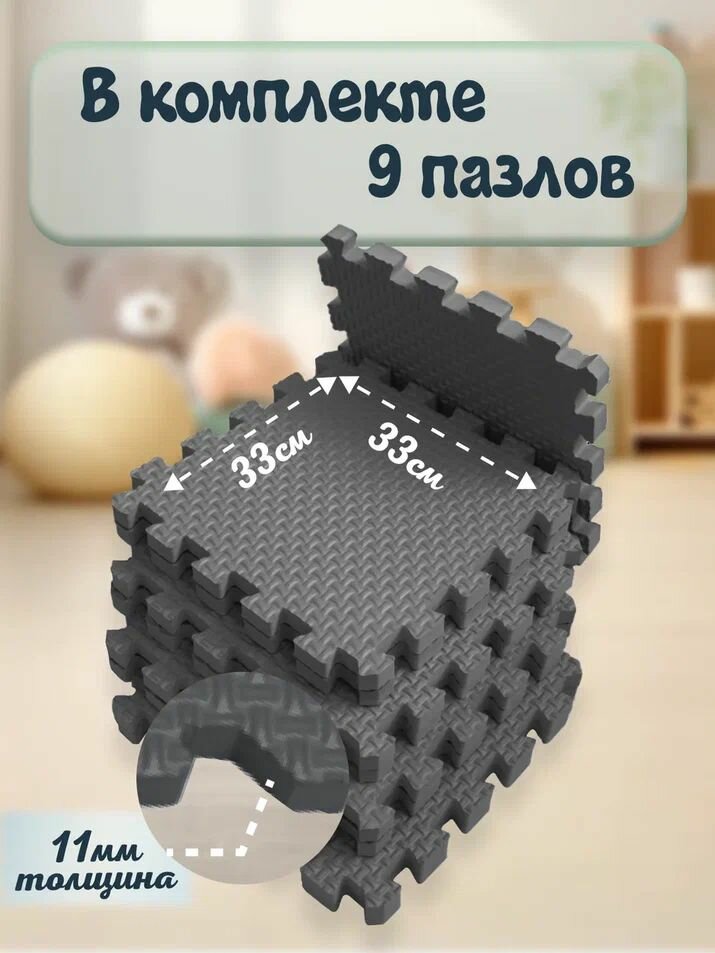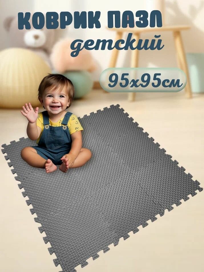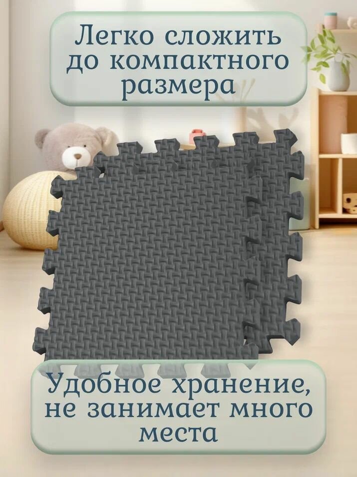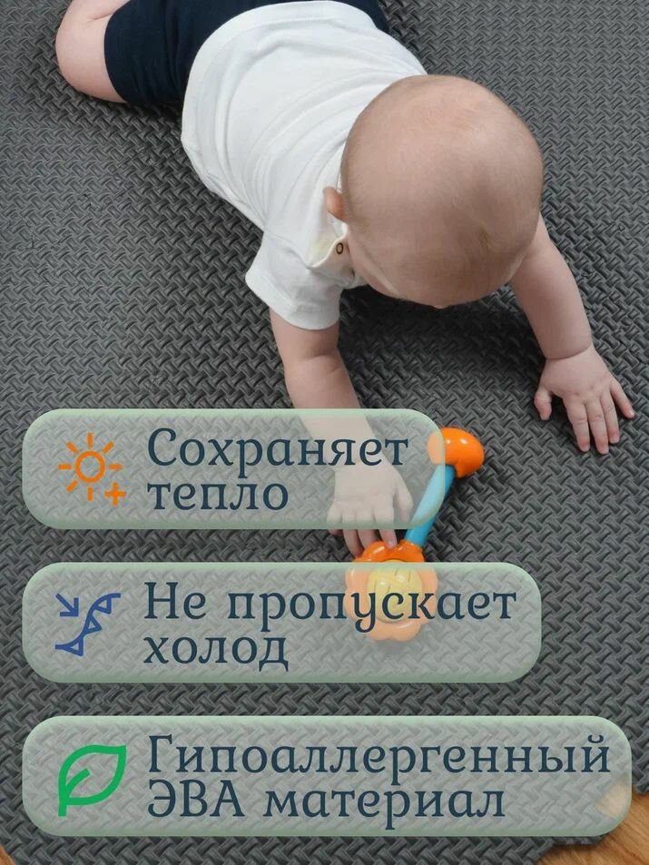 СохранитьМягкий коврик-пазл для детей "Eco Cover Плетенка", 9 частей, 95 х 95 см, серый интересное: