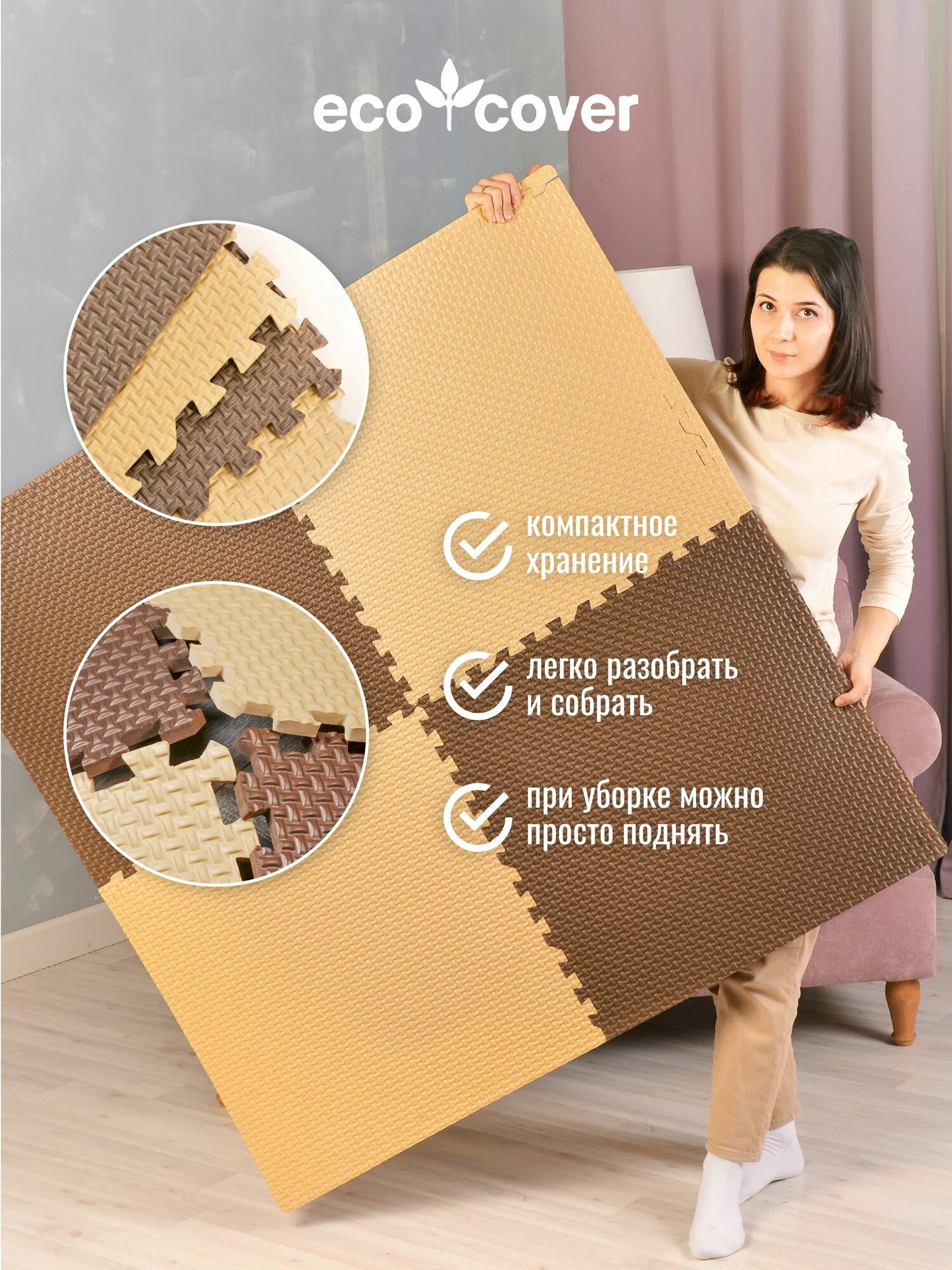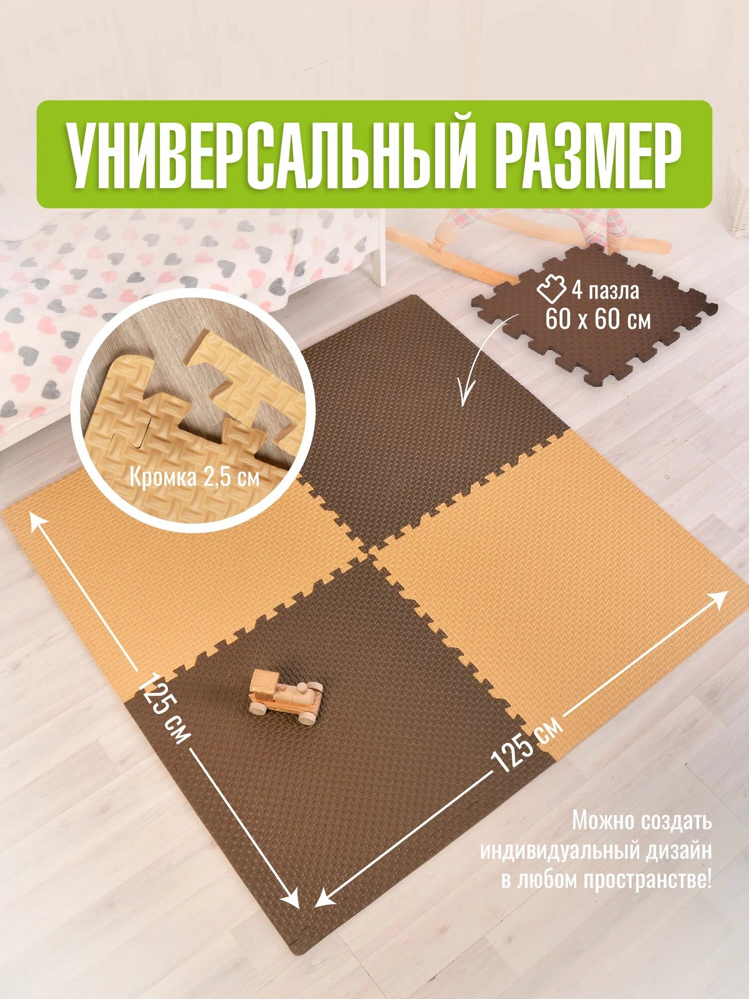 СохранитьКоврик детский для ползания пазл с кромками 120х120см бежево-коричневый интересное: