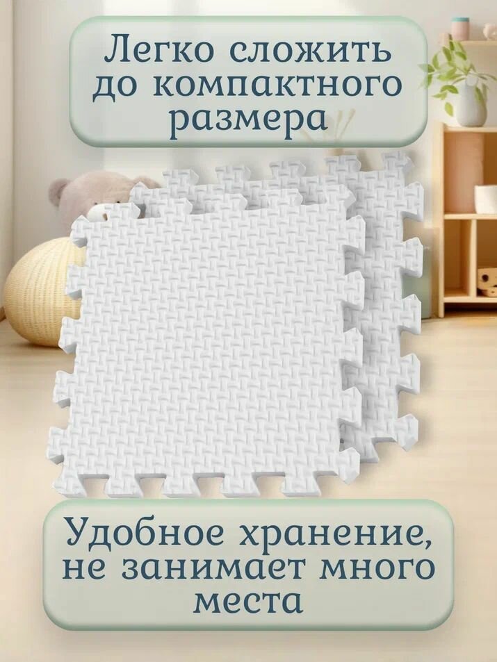 СохранитьМягкий коврик-пазл для детей "Eco Cover Плетенка", 9 частей, 95 х 95 см, белый интересное: