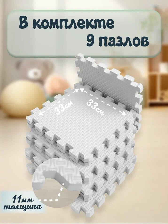 Мягкий детский коврик-пазл 33x33см, 9 сегментов, цвет бежевый, массажная поверхность