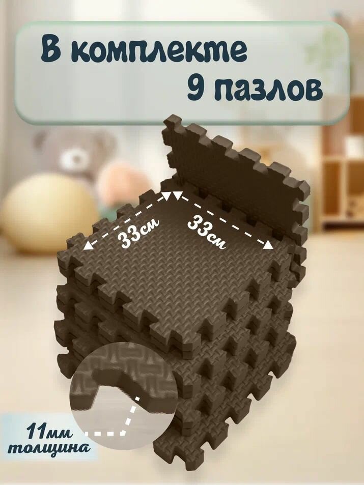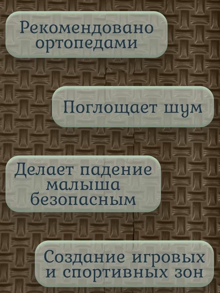 СохранитьМягкий коврик-пазл для детей "Eco Cover Плетенка", 9 частей, 95 х 95 см, коричневый интересное: