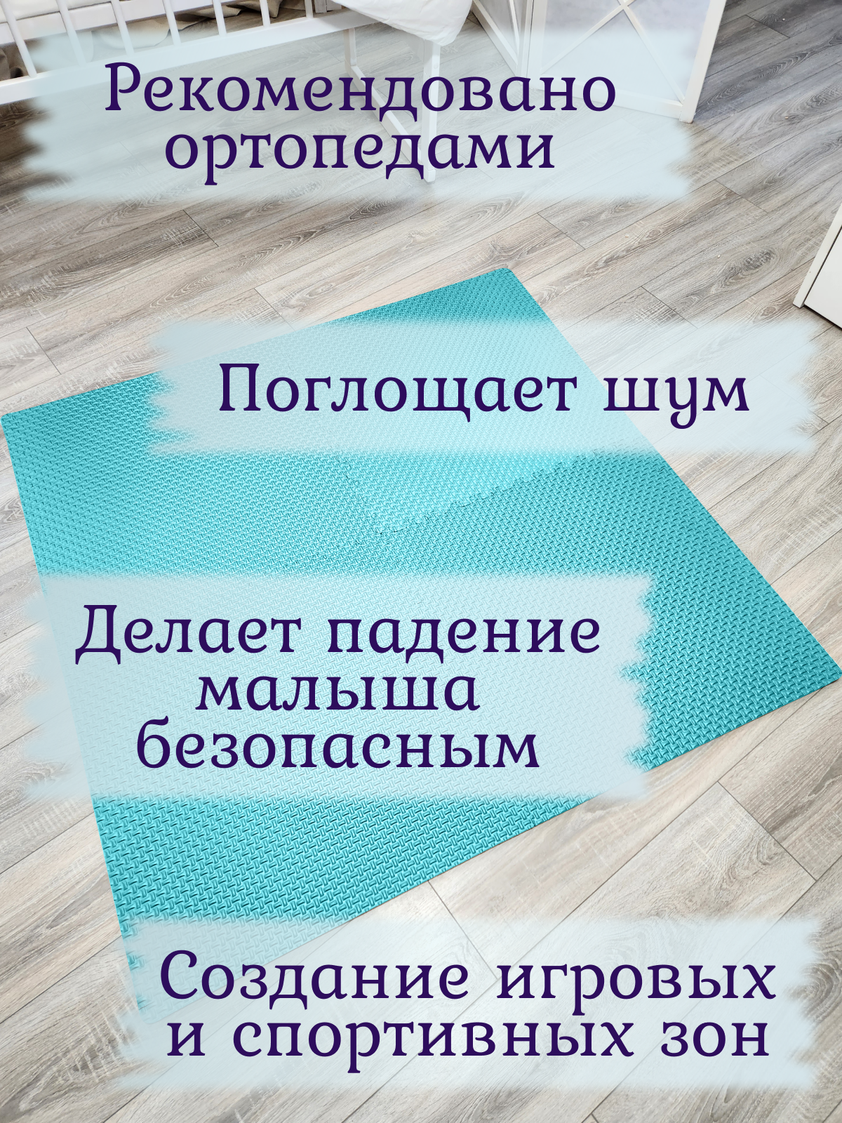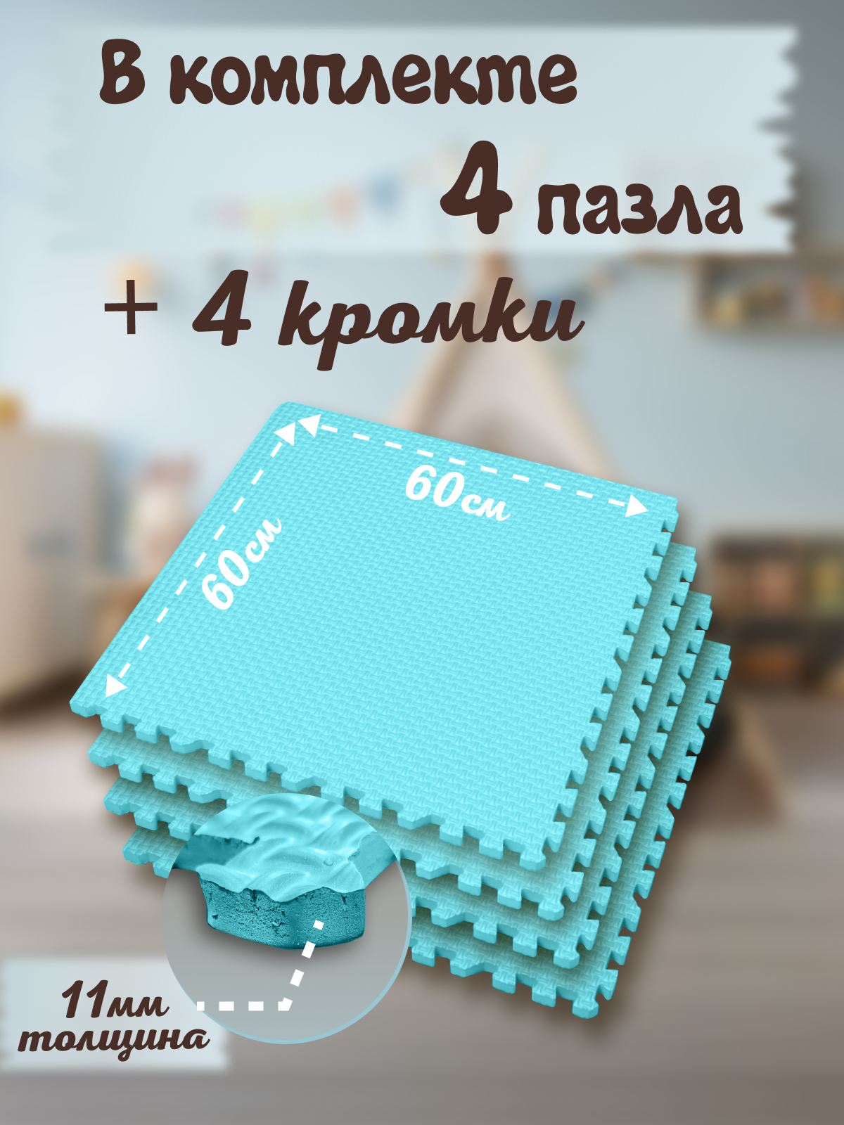 СохранитьКоврик детский для ползания пазл с кромкой 120х120 голубой интересное: