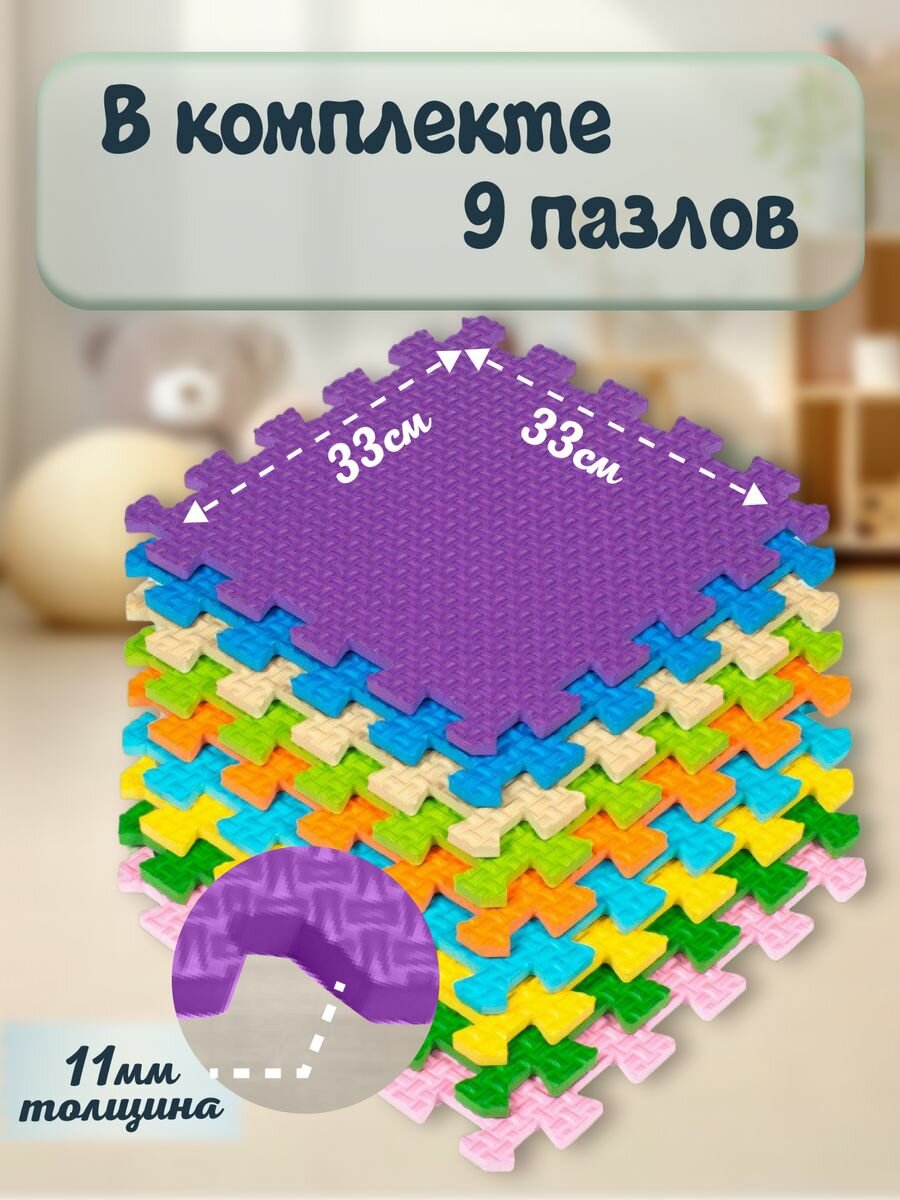 Купить Мягкий детский коврик-пазл "плетёнка" 33x33 см, 9 сегментов, ассорти