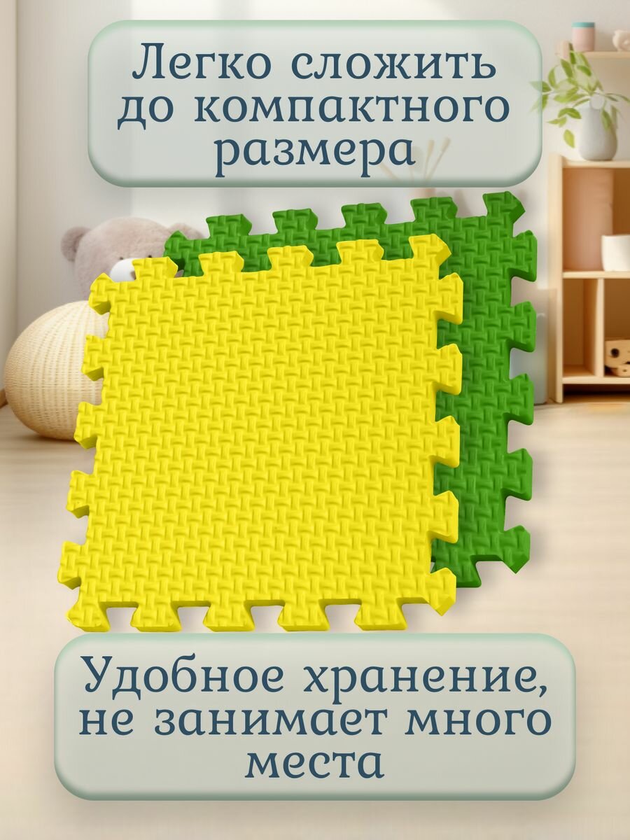 Коврик детский пазл Eco Cover Плетенка, 9 секций, 33x33 см, салатовый
