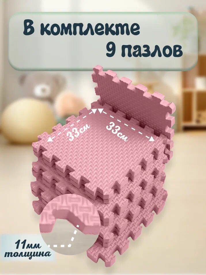 Мягкий детский коврик-пазл "плетёнка" 33x33 см, 9 сегментов, ассорти