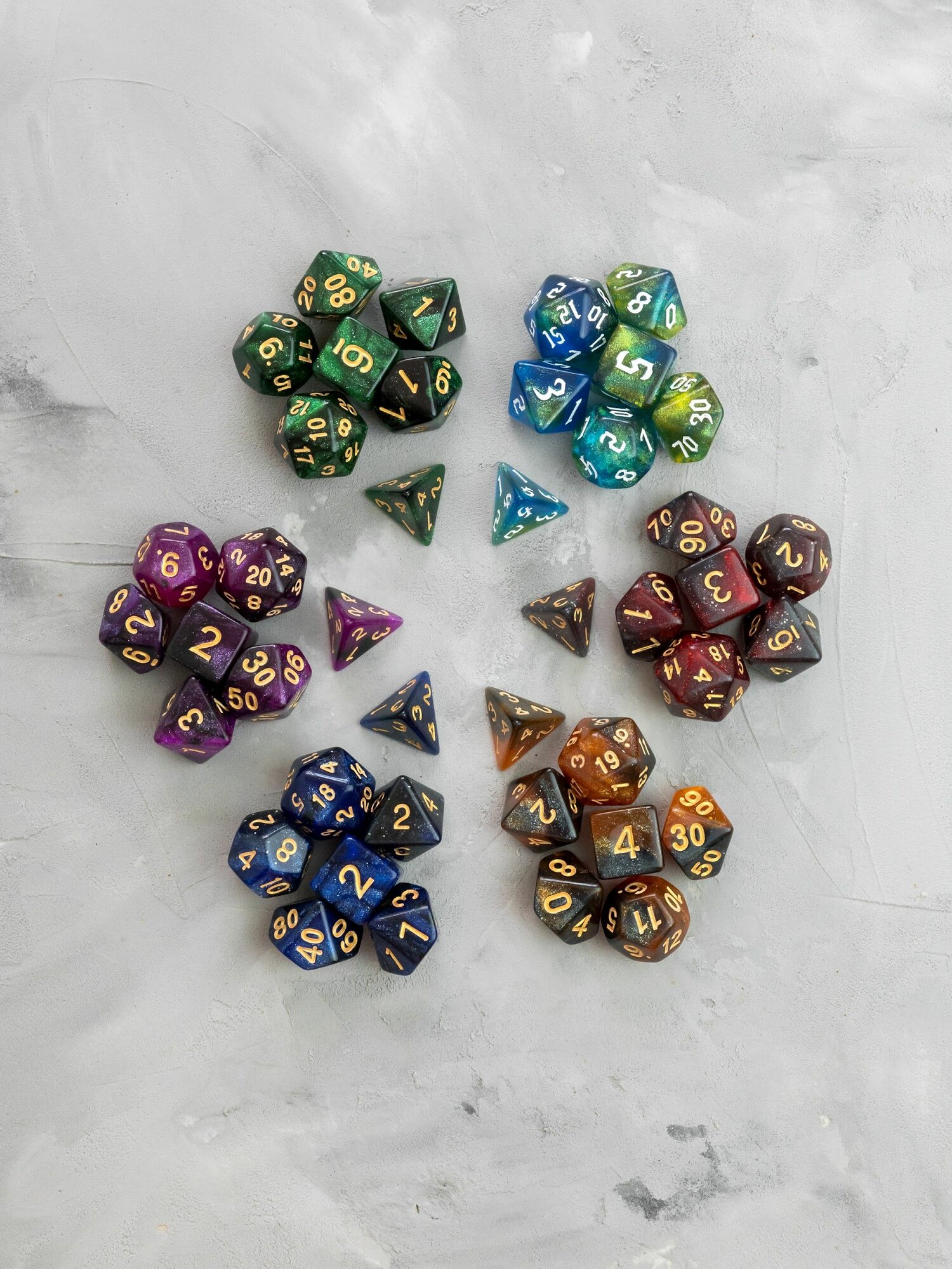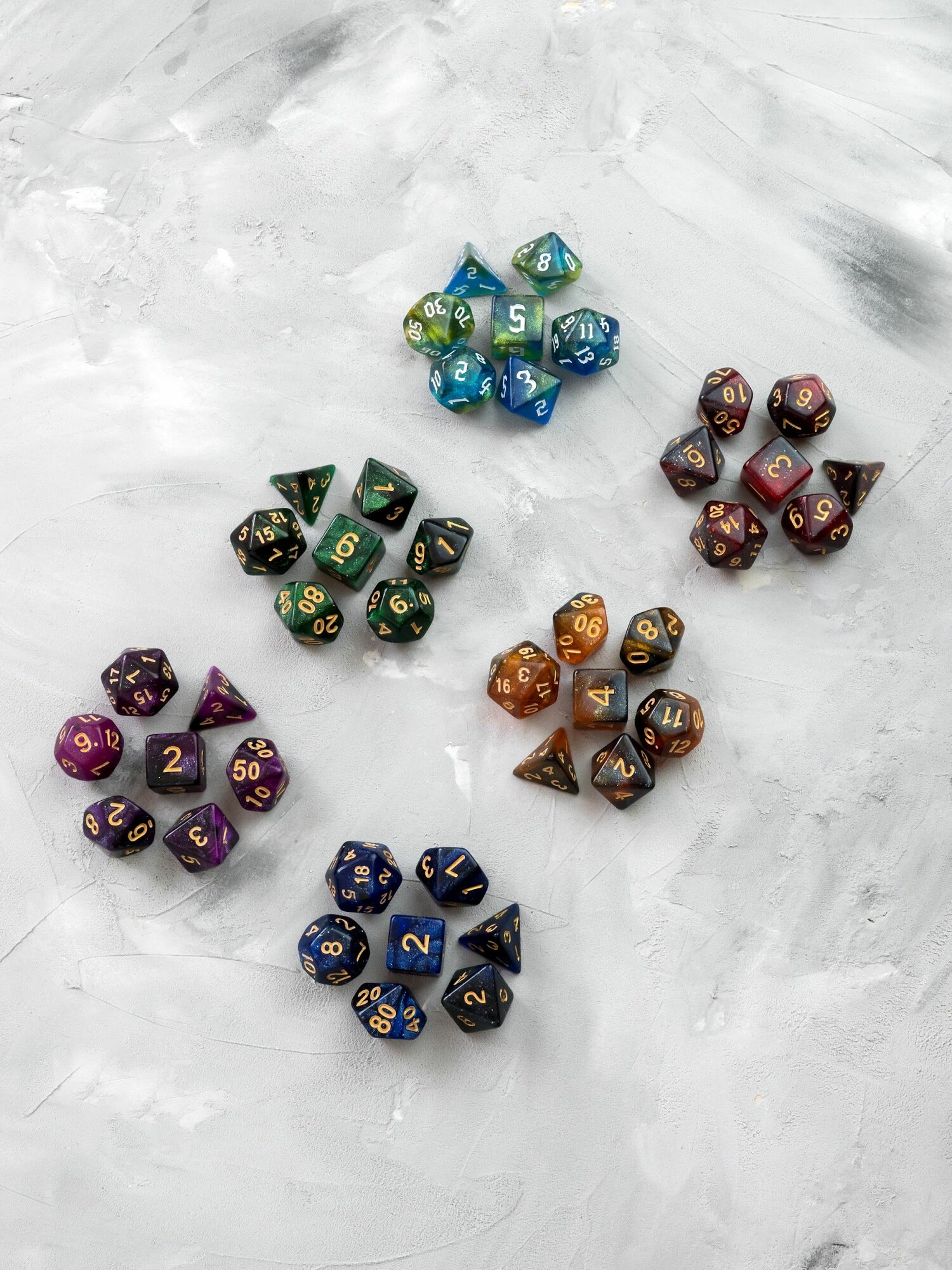 СохранитьКости игральные, дайсы, кубики для DnD (ДнД) Набор из 6 цветов интересное: